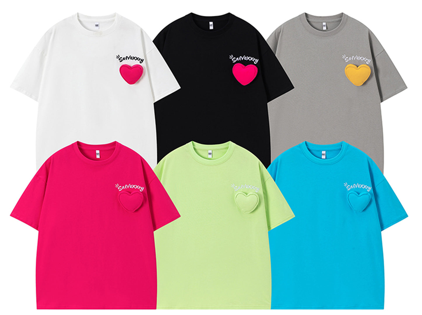 𝕃oose 𝔽it ☞𝟤𝟢𝟤𝟧 ☜美式復古愛心字母圓領T-Shirt寬版上衣SA-5