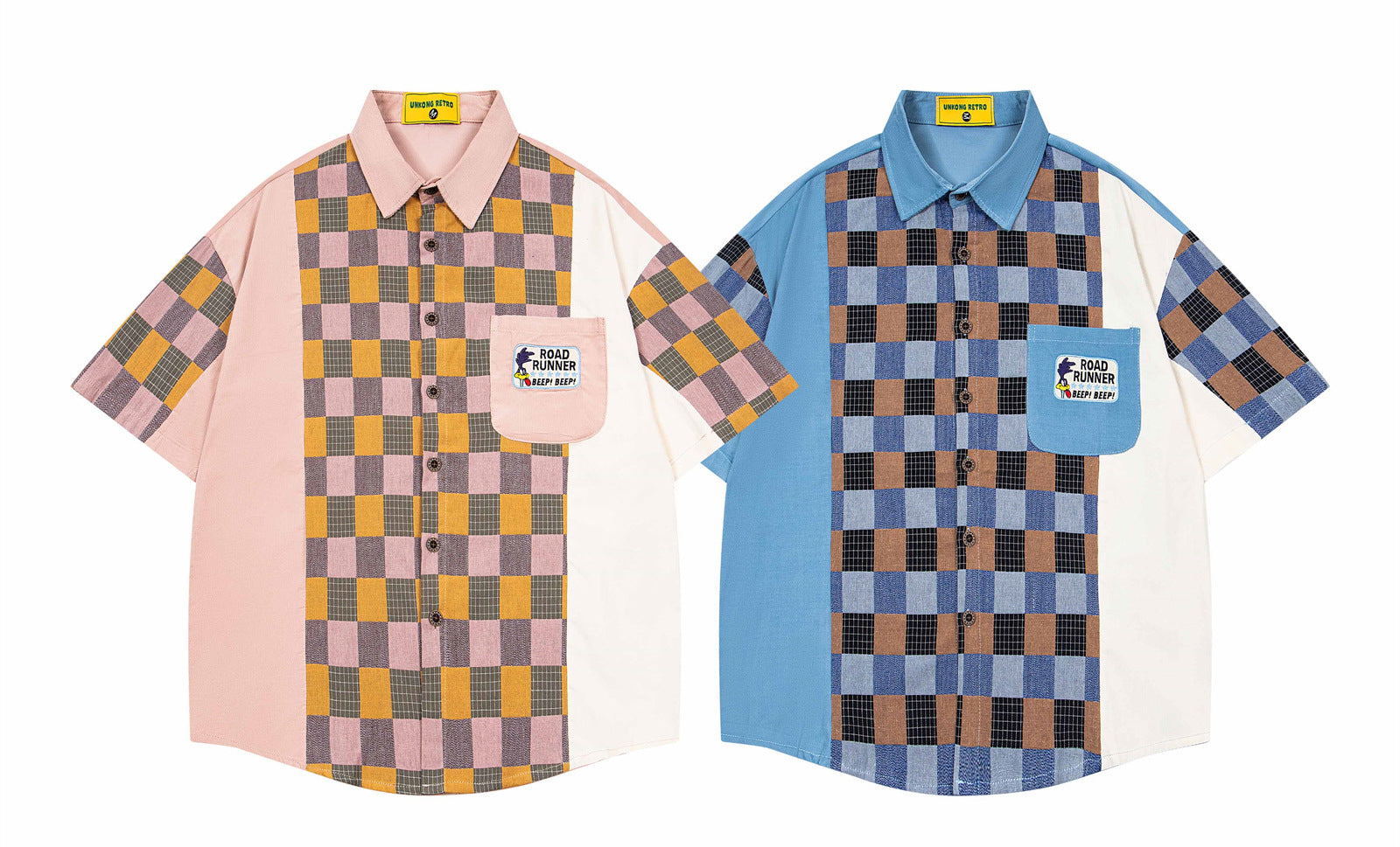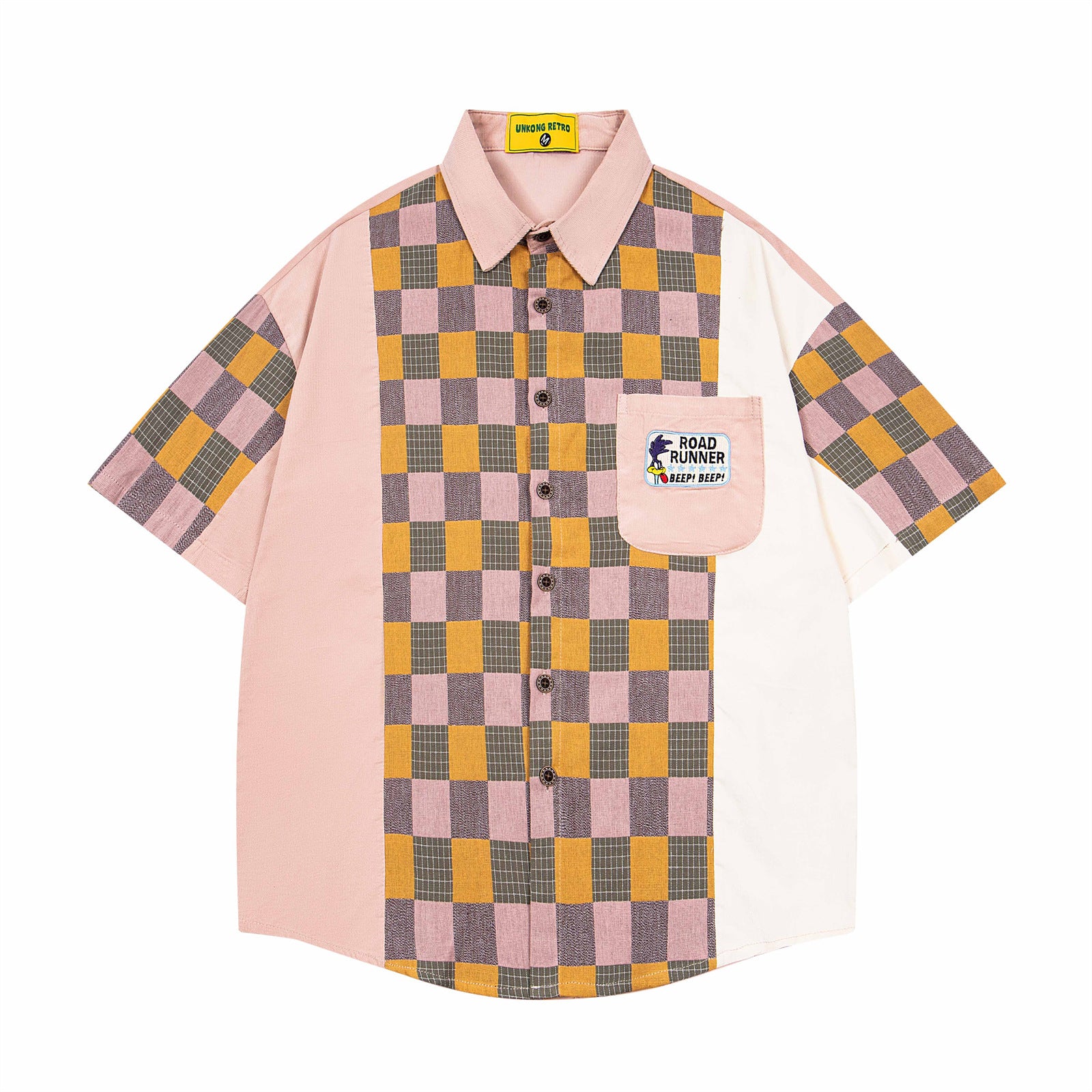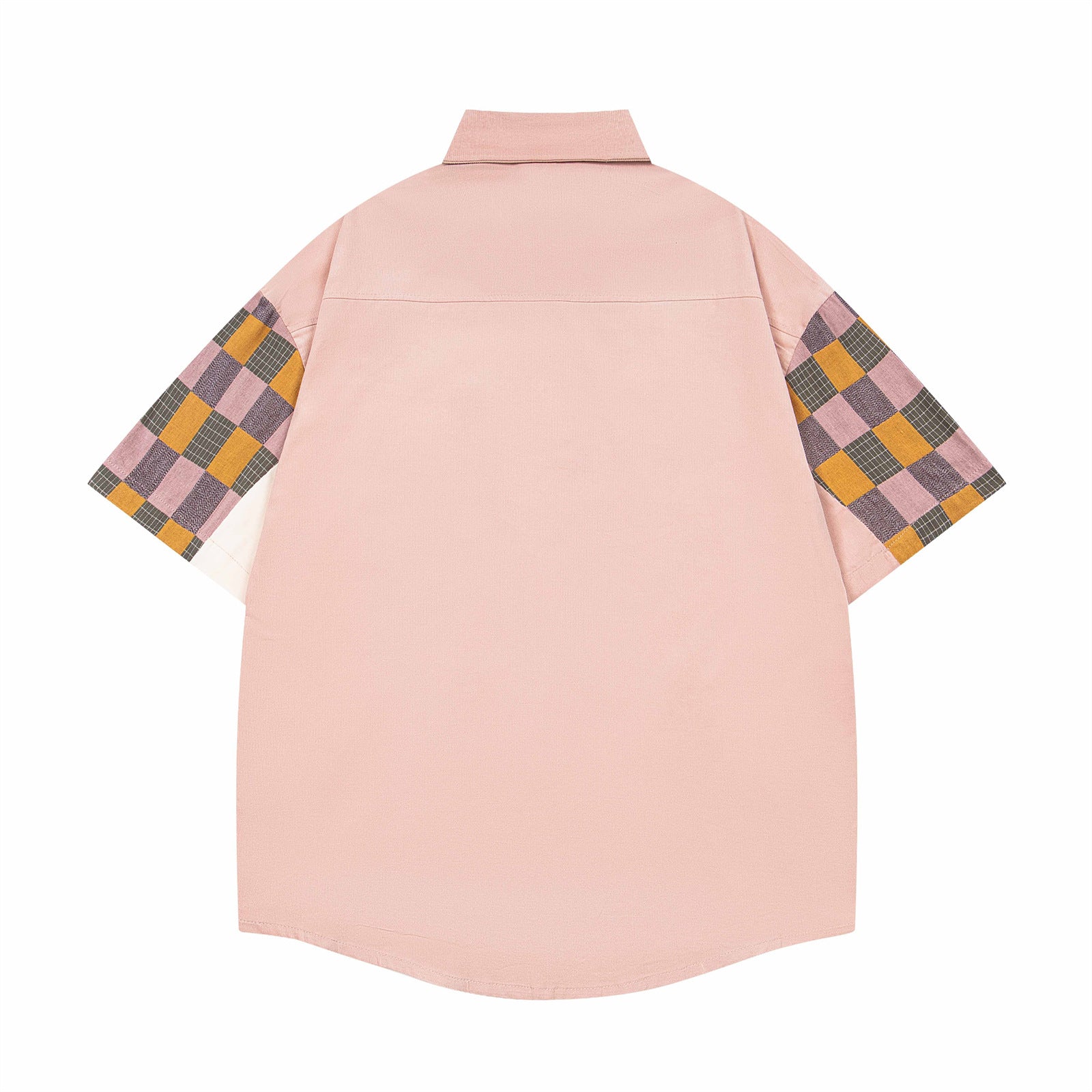 𝔼mbro 𝕊hirt𒉽美式復古拼貼刺繡學院風寬鬆襯衫 UN-5