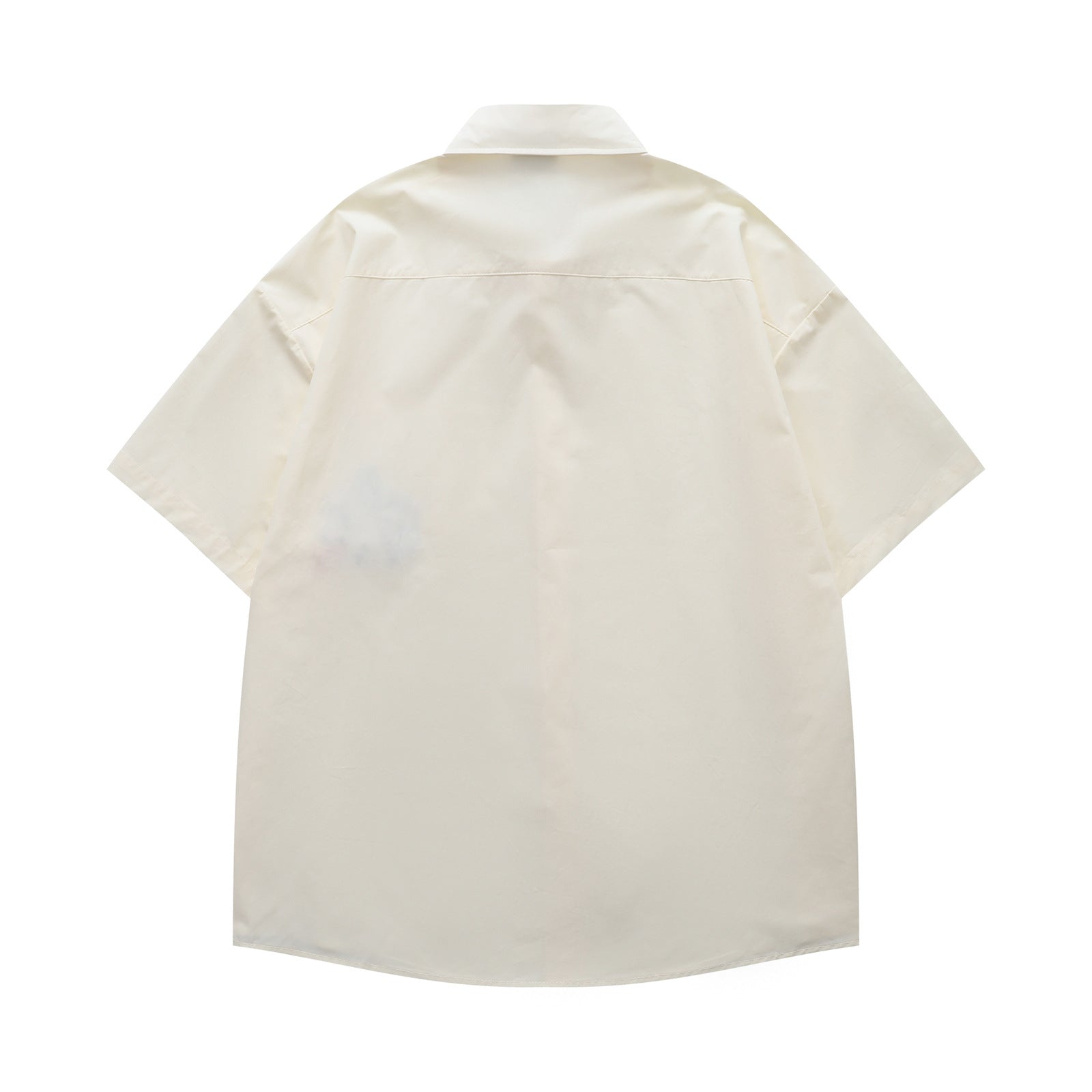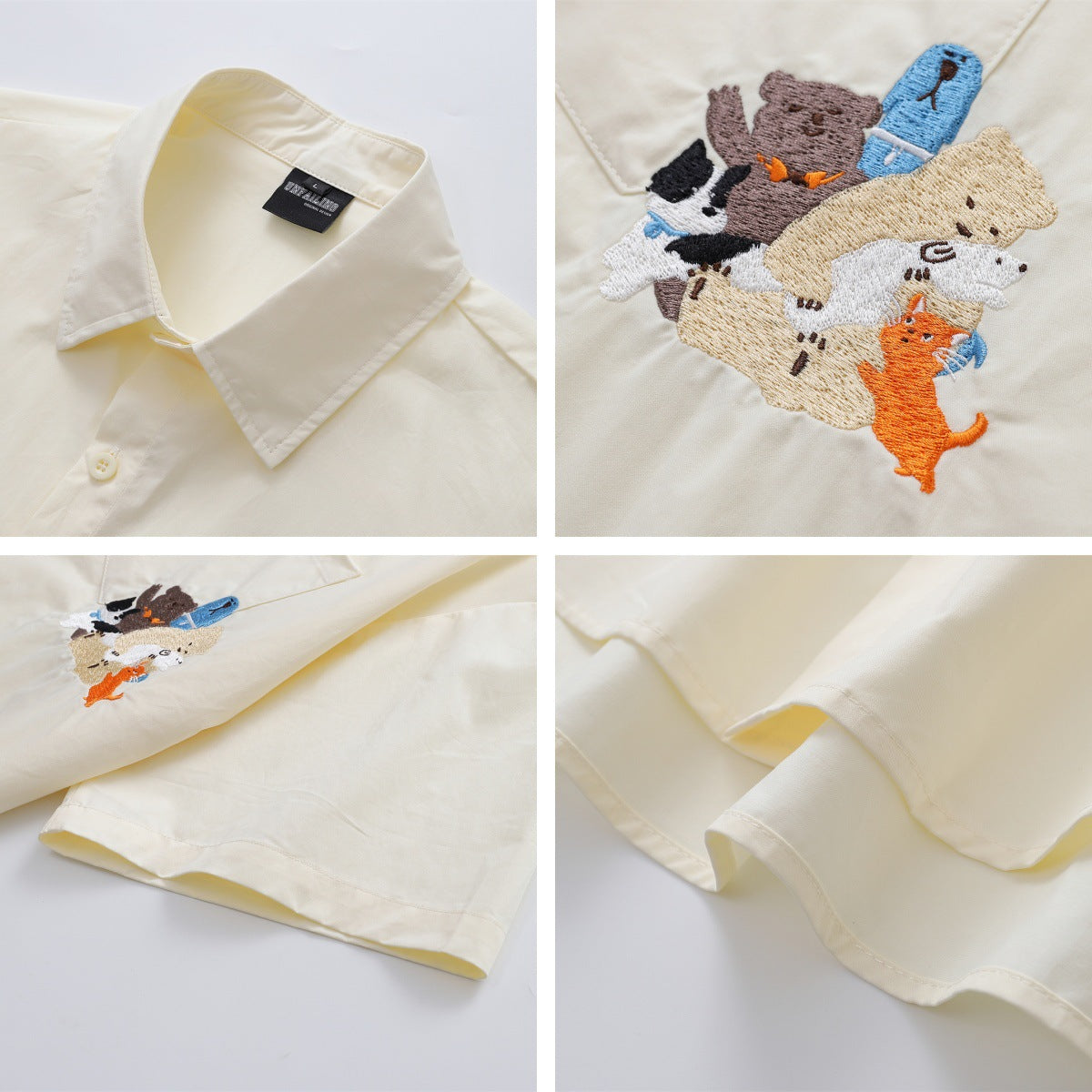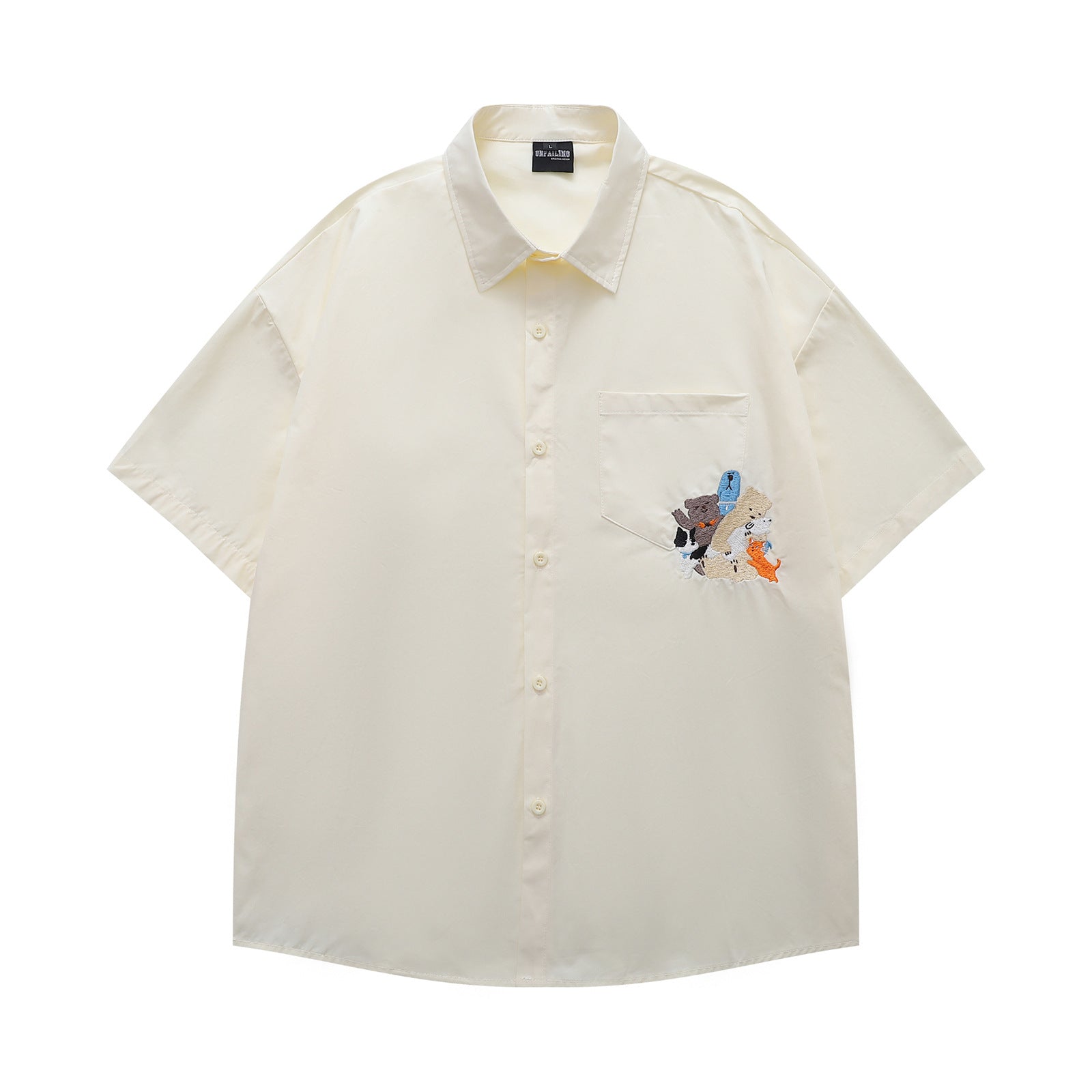 𝔼mbro 𝕊hirt𒉽日式復古可愛刺繡短袖百搭休閒襯衫 (米黃色)