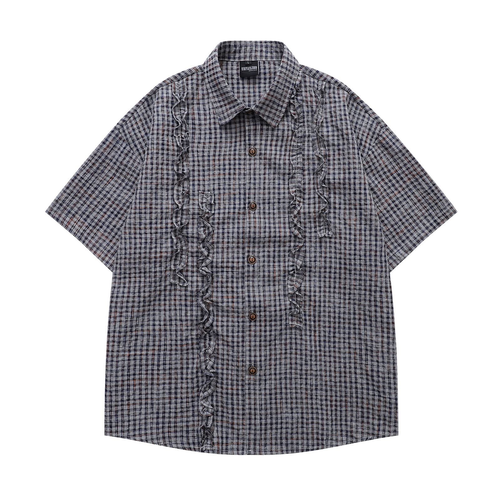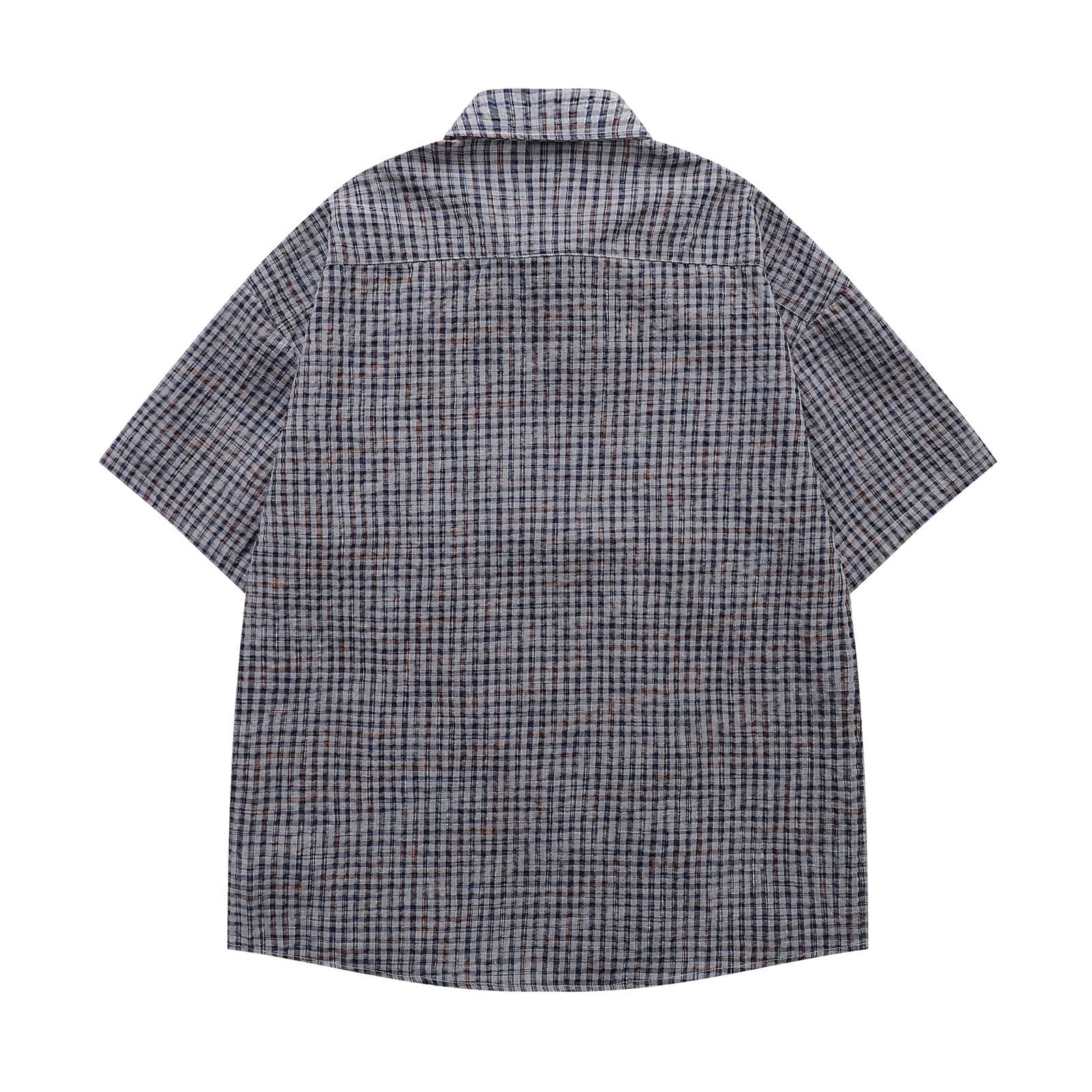 𝔼mbro 𝕊hirt𒉽日式復古格子短袖寬鬆襯衫Y-95