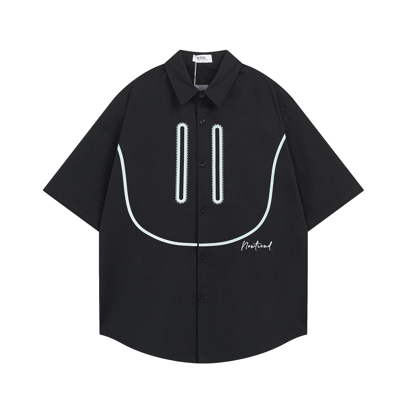 𝕃oose 𝔽it ☞𝟤𝟢𝟤𝟧 ☜美式復古笑臉印花百搭寬鬆襯衫 ɴᴛ𝟢𝟫 (黑色)