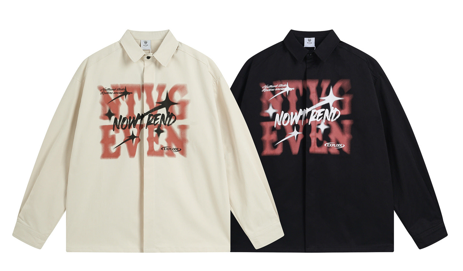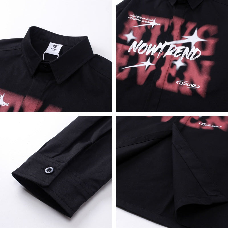 𝔼mbro 𝕊hirt𒉽秋冬長袖復古印花寬鬆襯衫NT-90