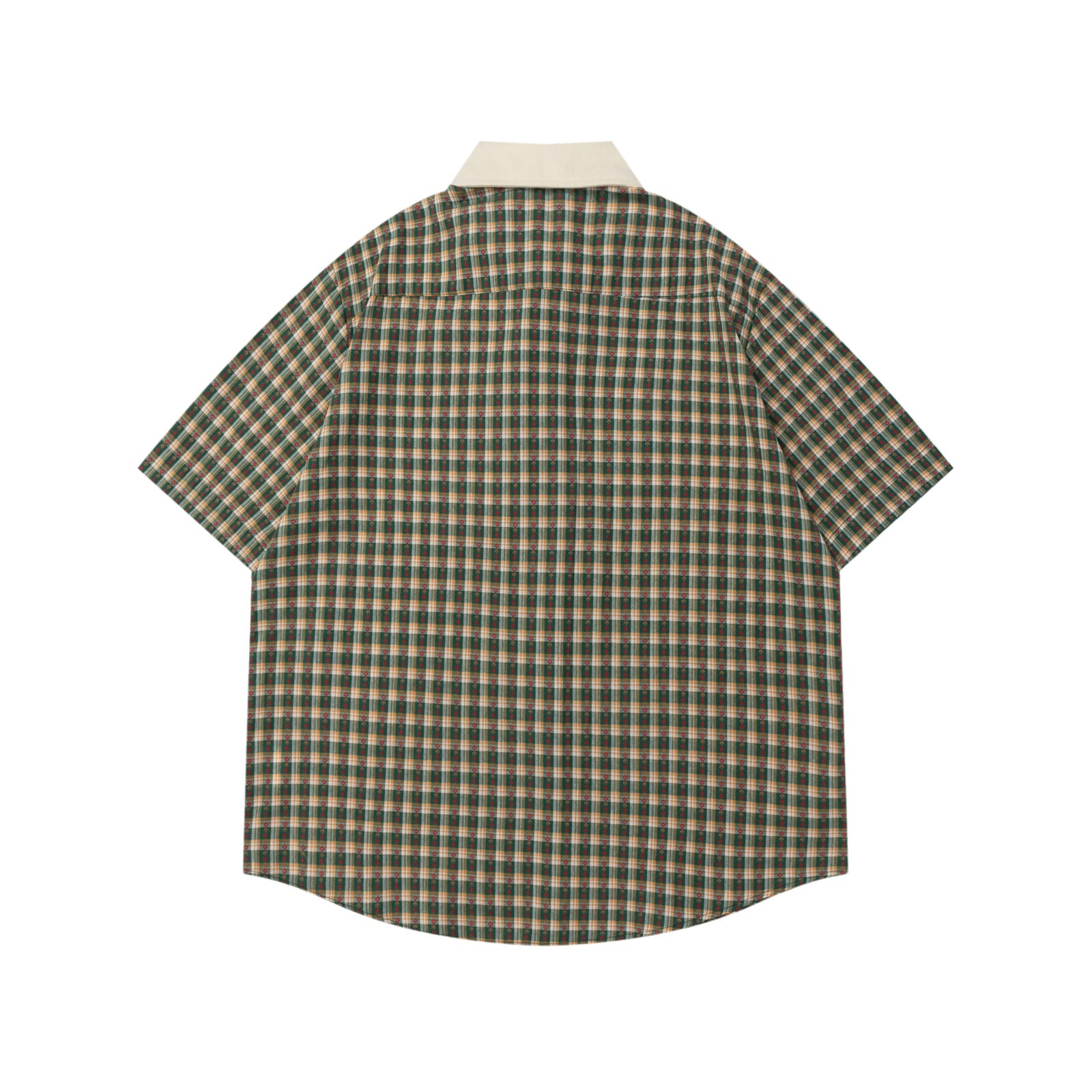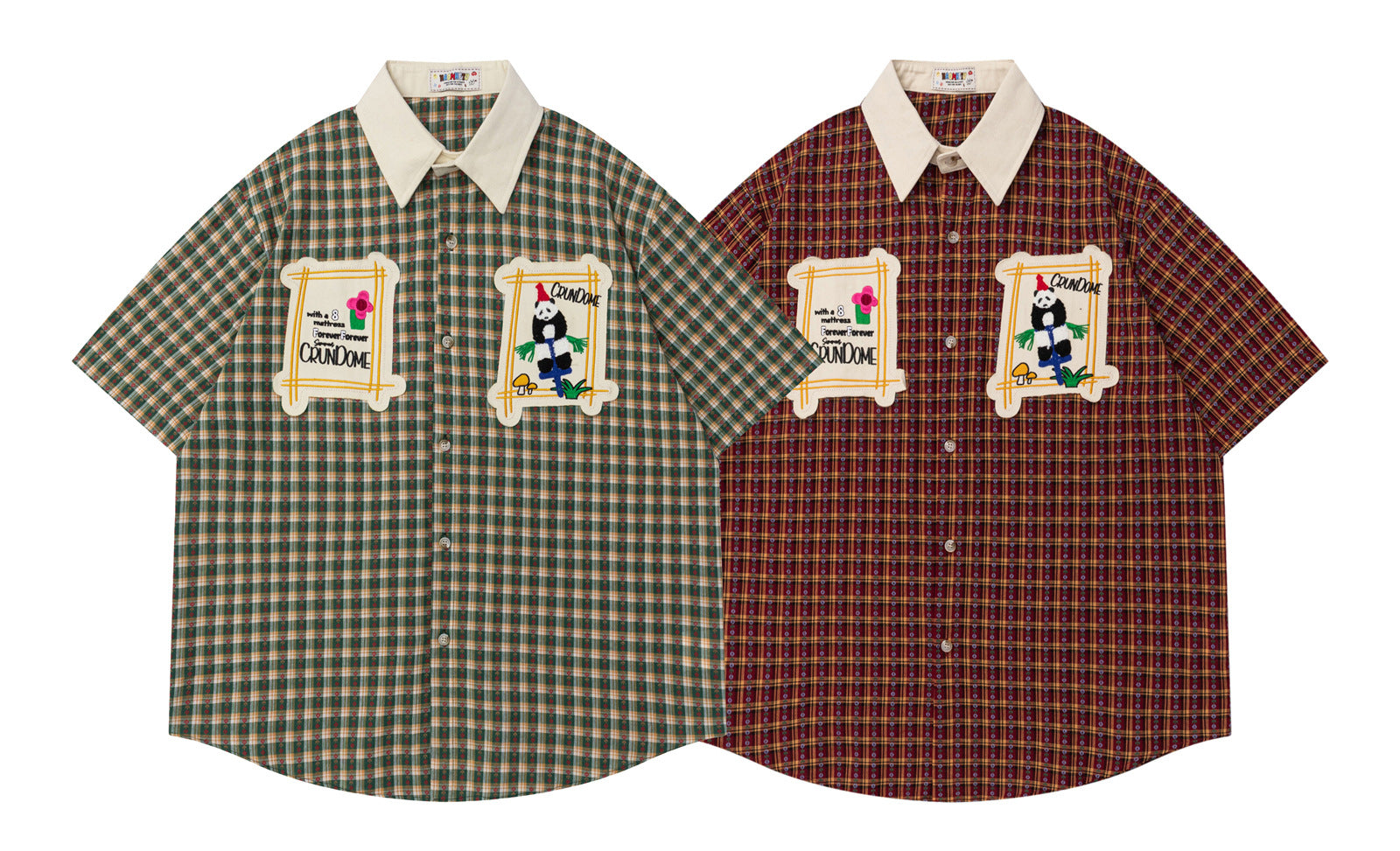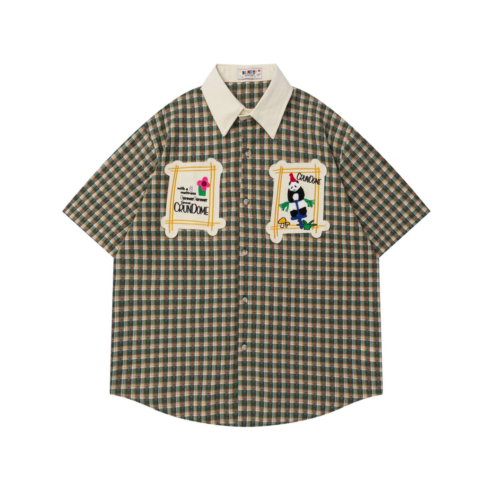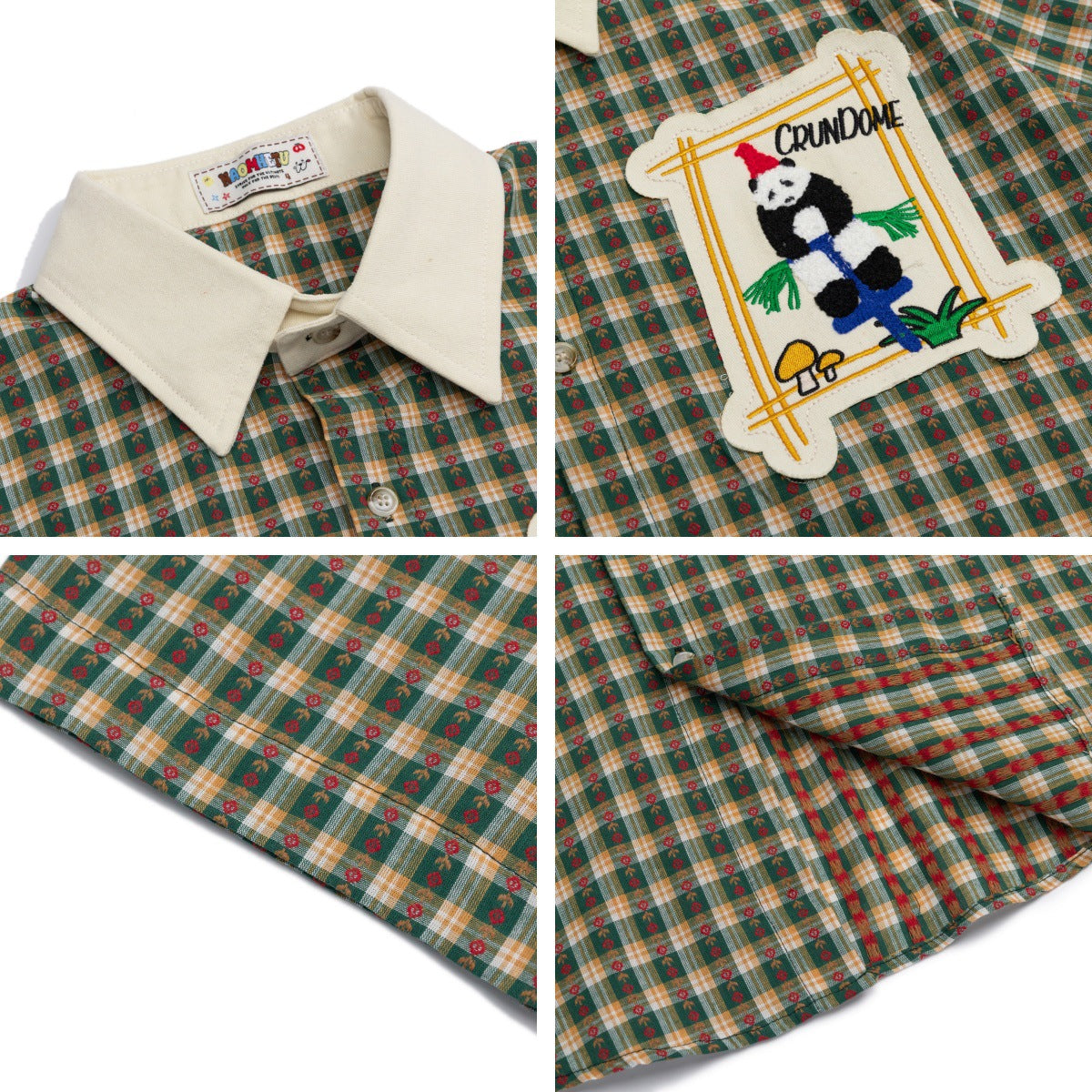 𝔼mbro 𝕊hirt𒉽美式復古可愛熊貓刺繡格子襯衫N-6