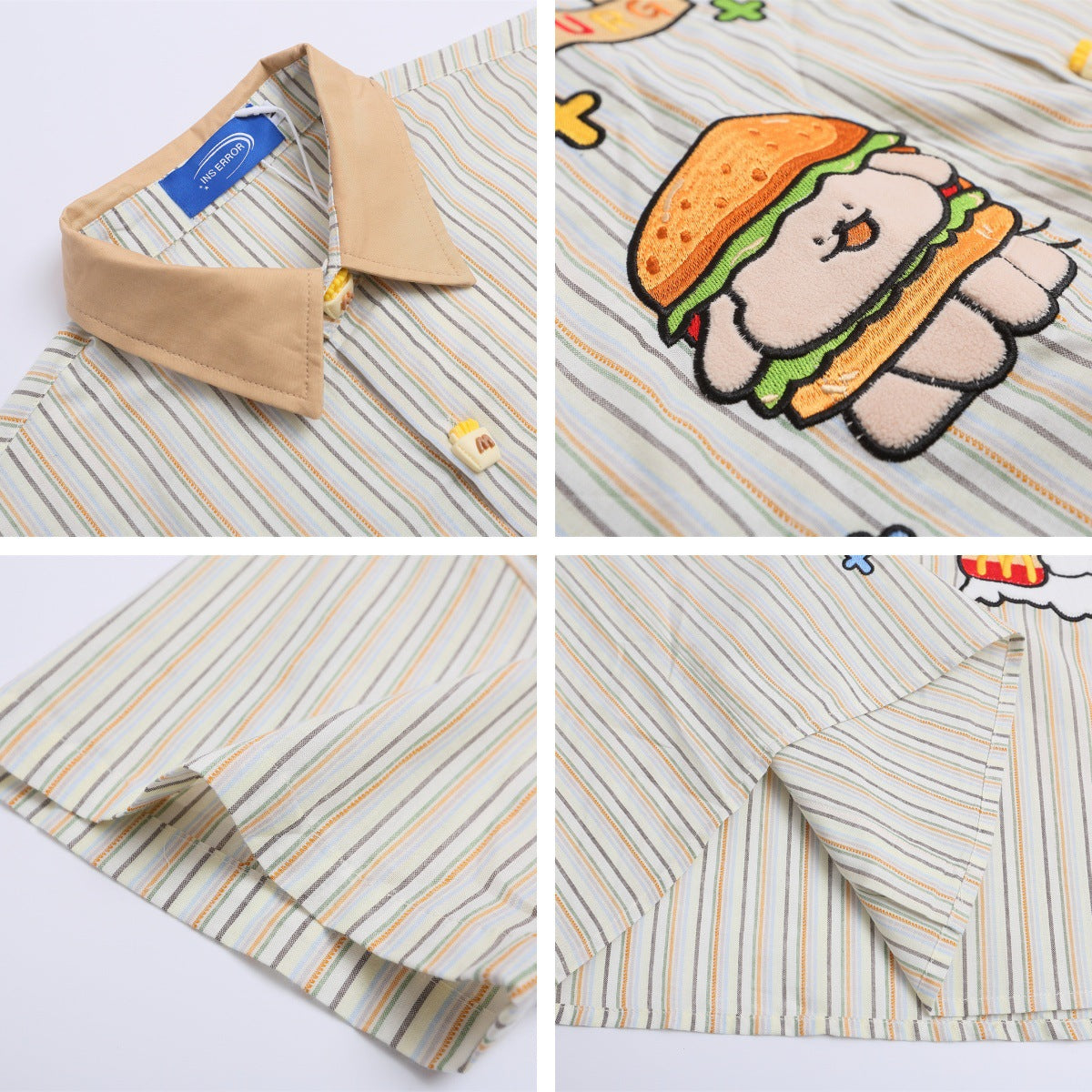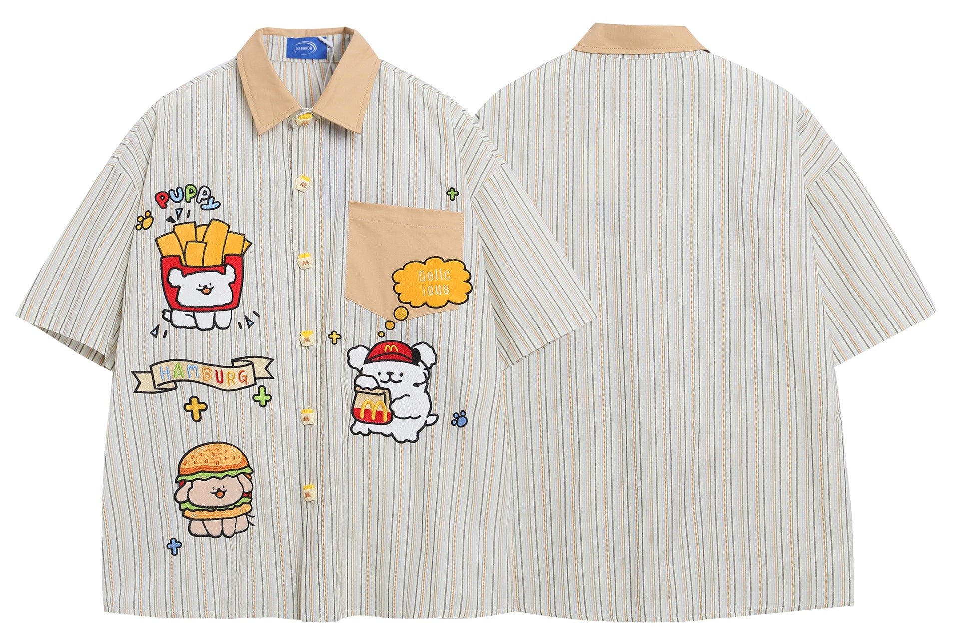 𝔼mbro 𝕊hirt𒉽美式復古可愛動物刺繡短袖百搭襯衫外套IN-567