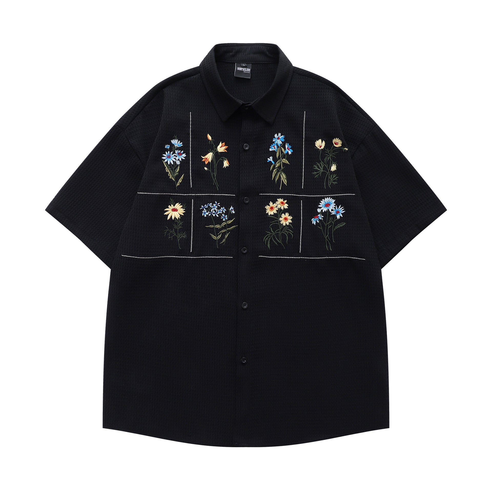 𝔼mbro 𝕊hirt𒉽日式復古花卉刺繡華夫格百搭寬鬆襯衫 Y30