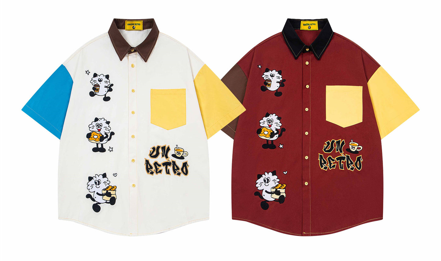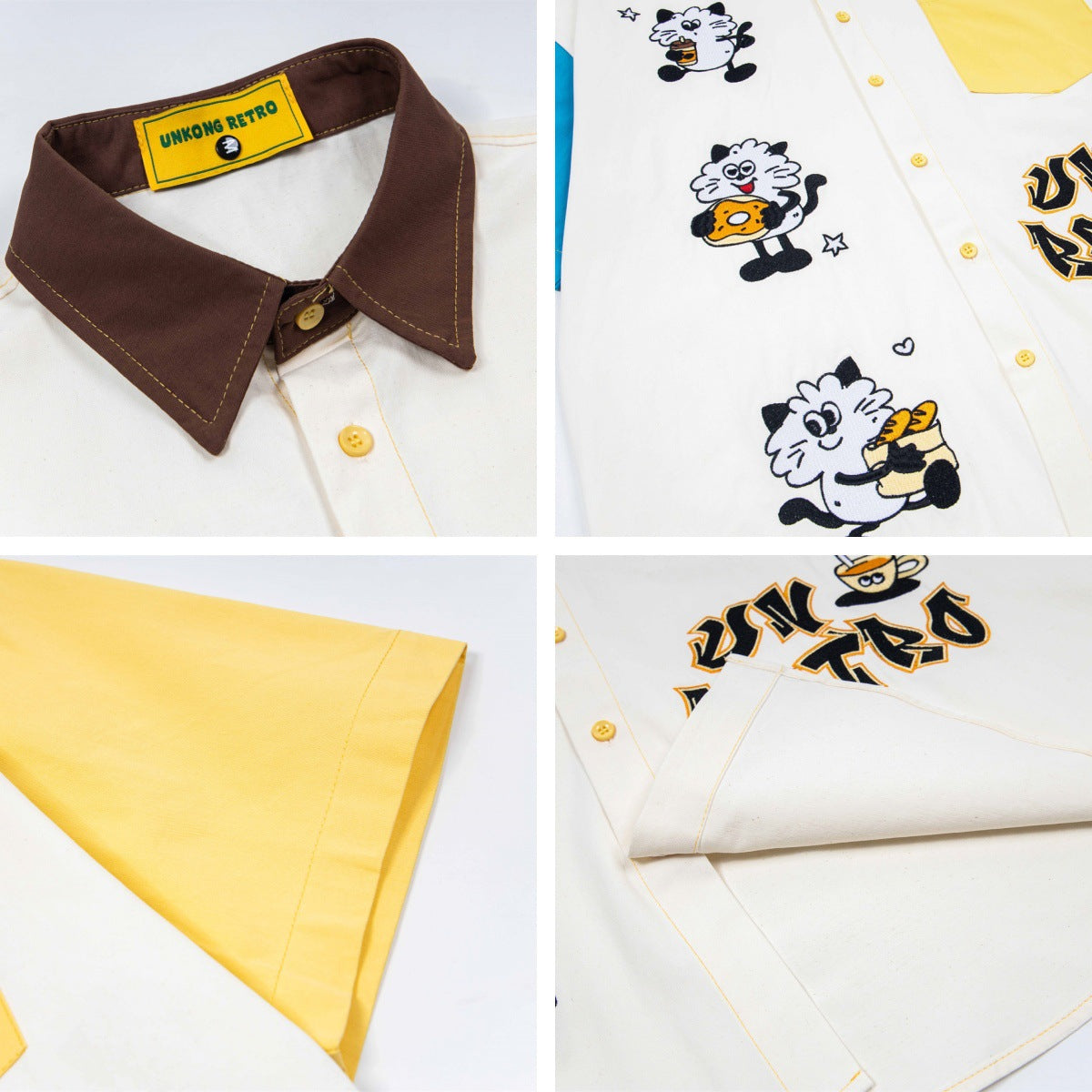 𝔼mbro 𝕊hirt𒉽美式復古趣味動物拼貼刺繡寬鬆襯衫U-33
