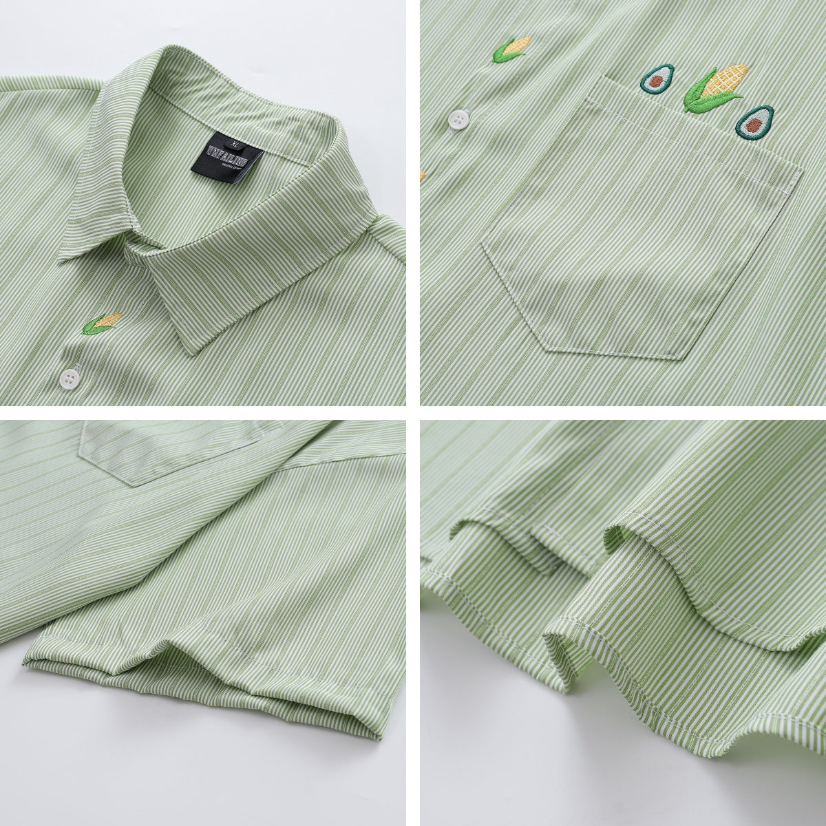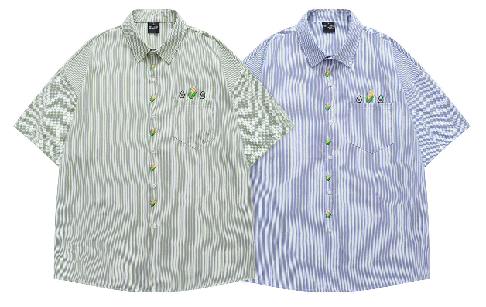 𝔼mbro 𝕊hirt𒉽美式復古玉米刺繡短袖寬鬆襯衫Y00