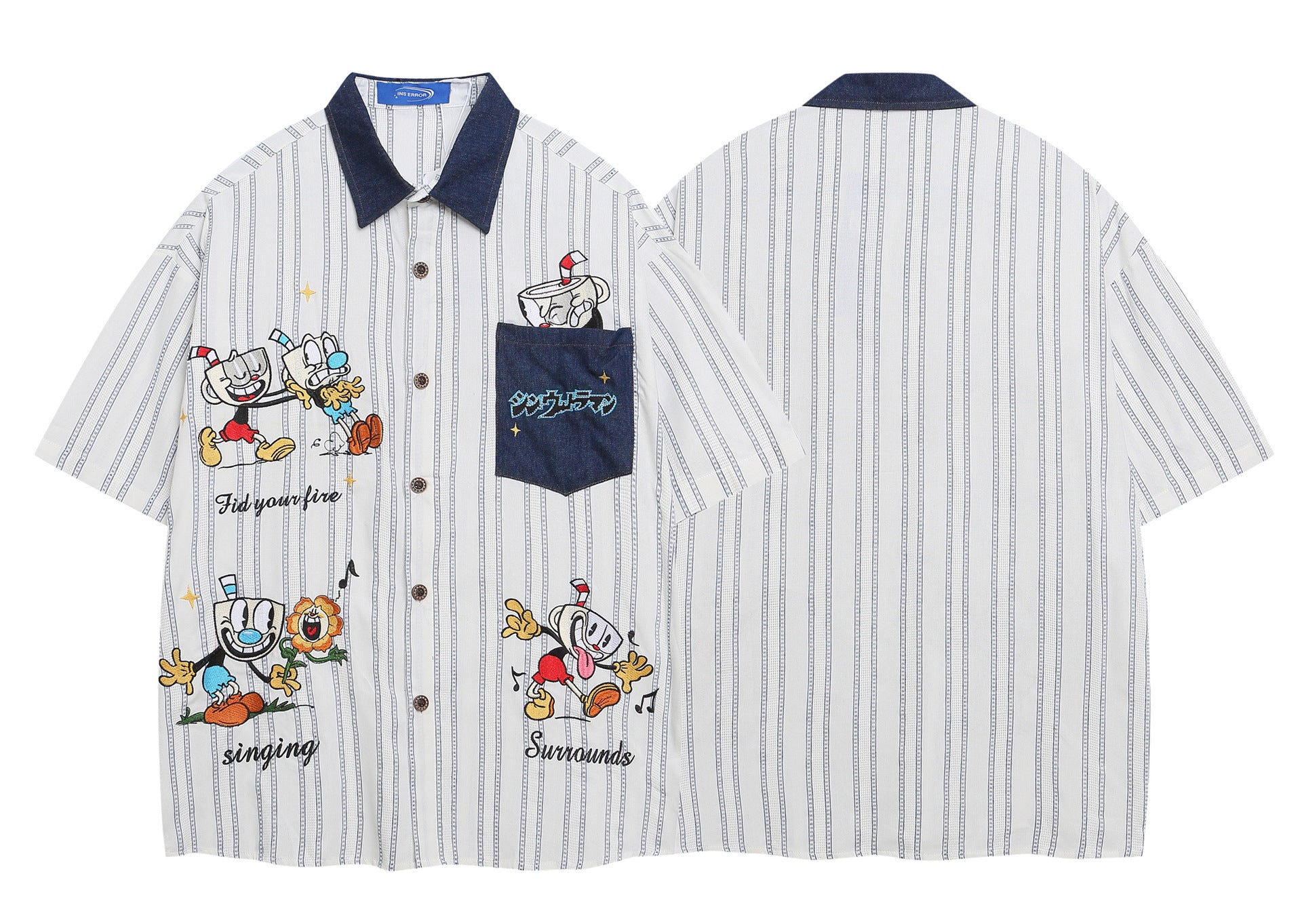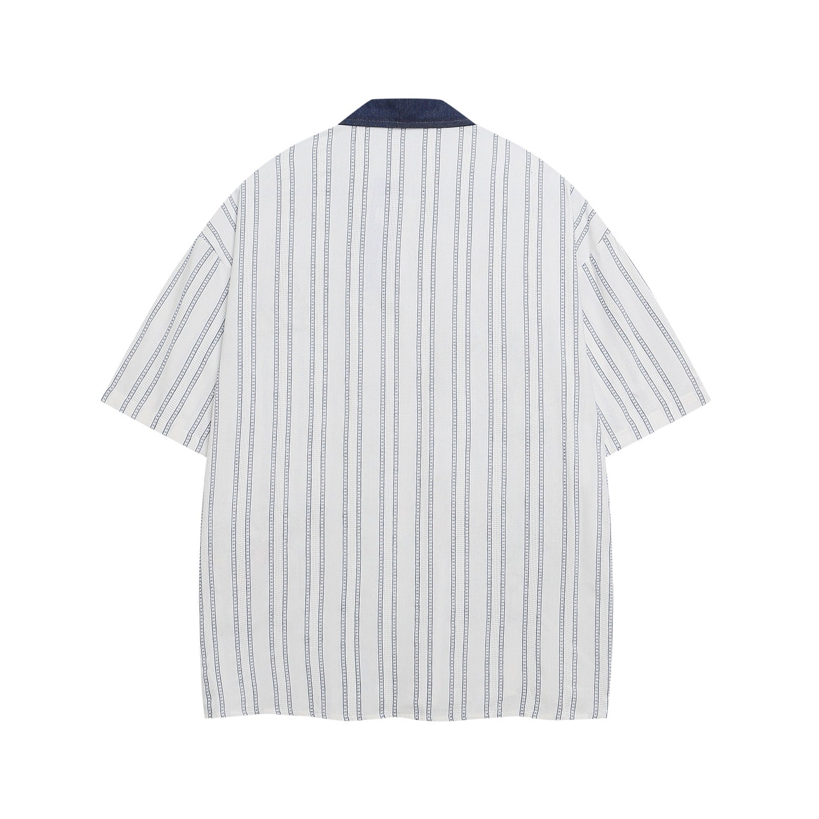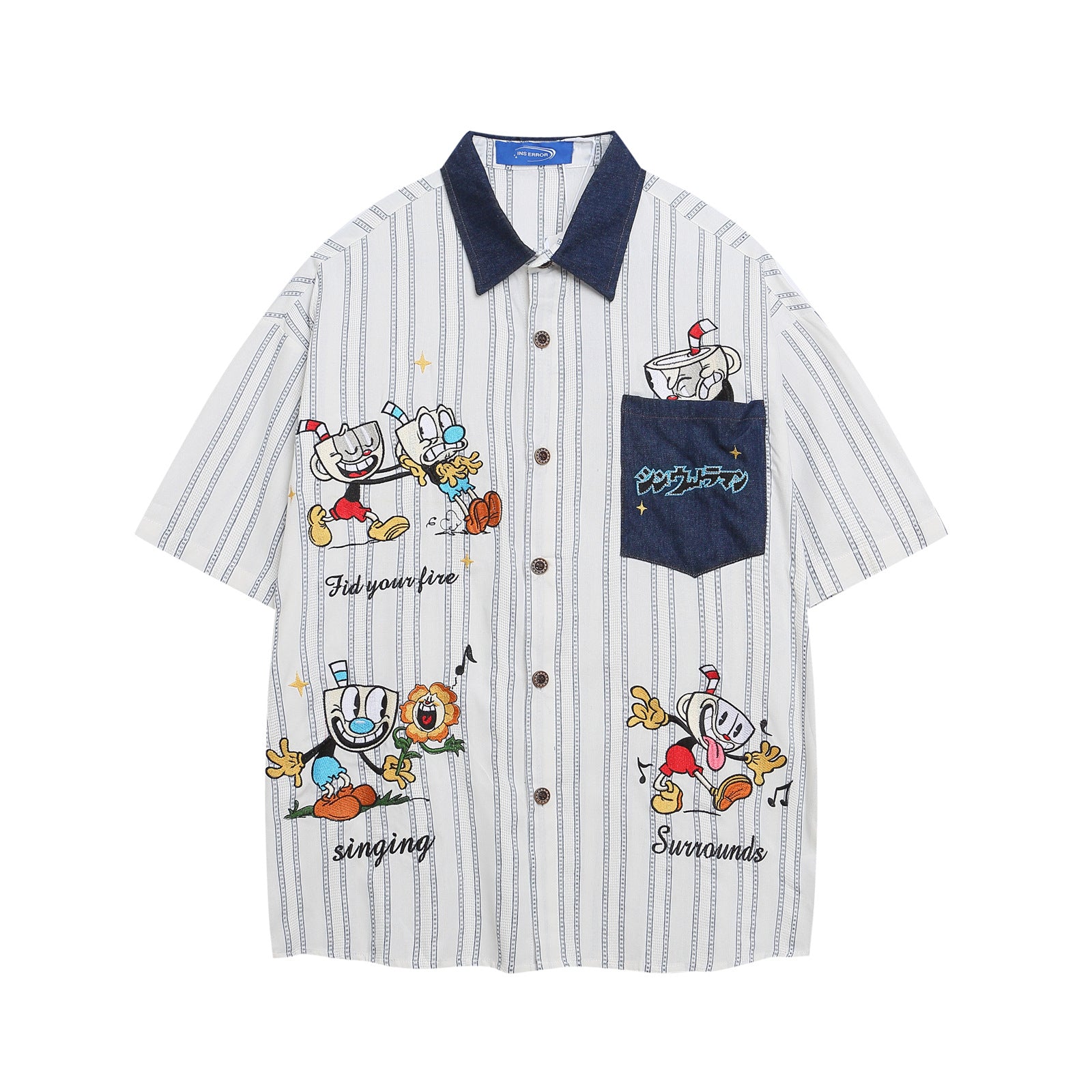 𝔼mbro 𝕊hirt𒉽美式復古卡通刺繡寬鬆條紋襯衫 IN-13