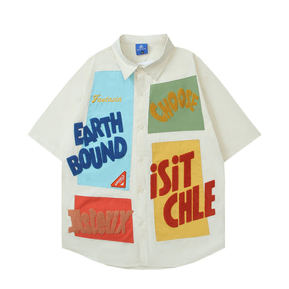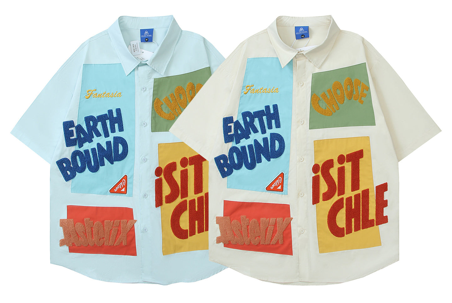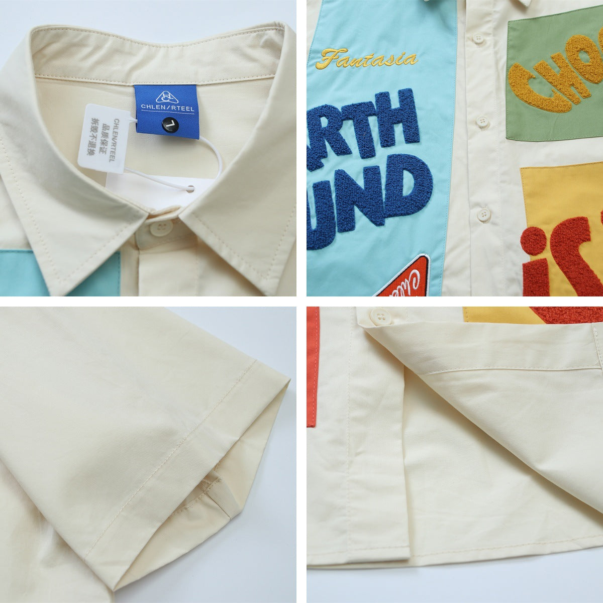 𝔼mbro 𝕊hirt𒉽美式復古字母毛巾繡設計感短袖休閒襯衫 C-243