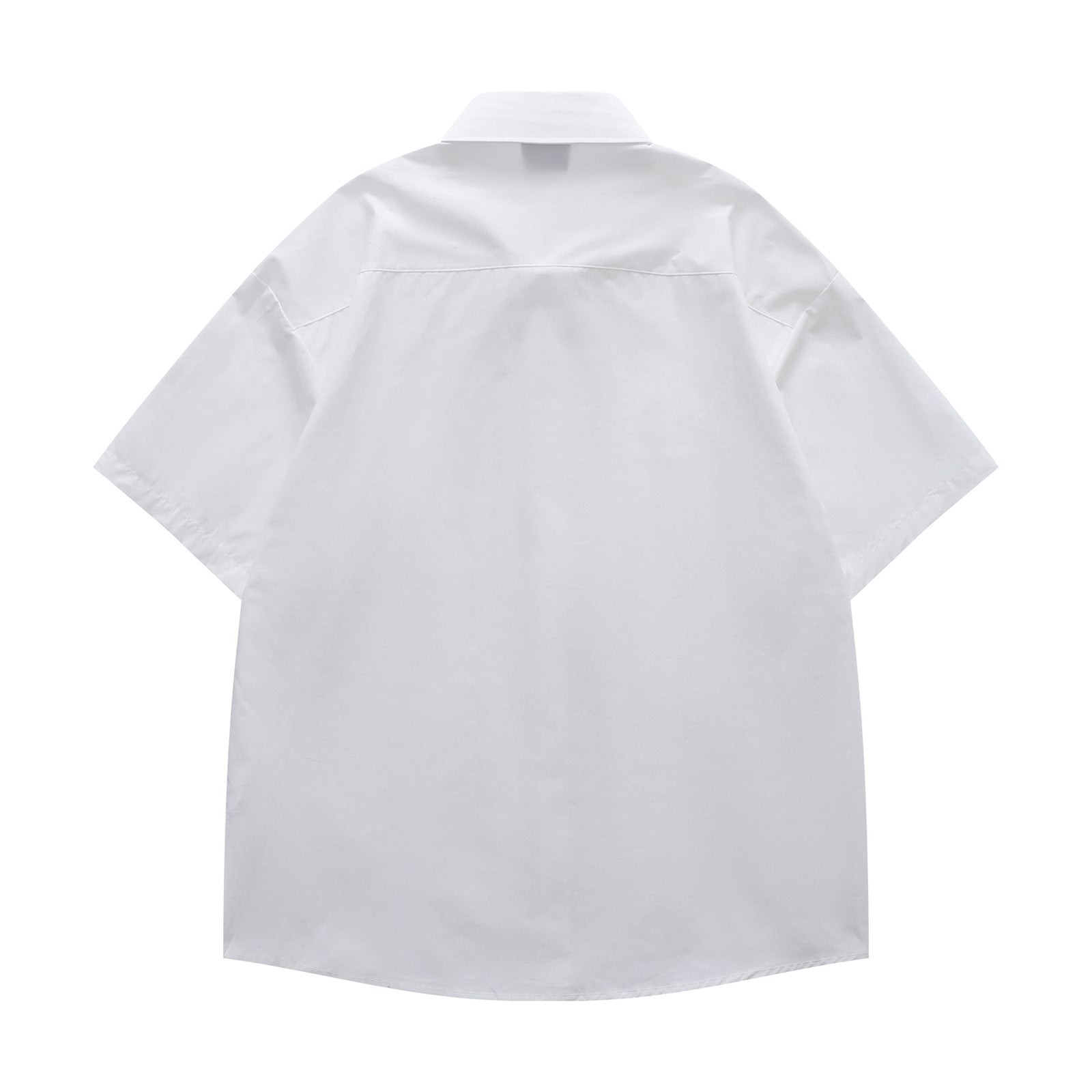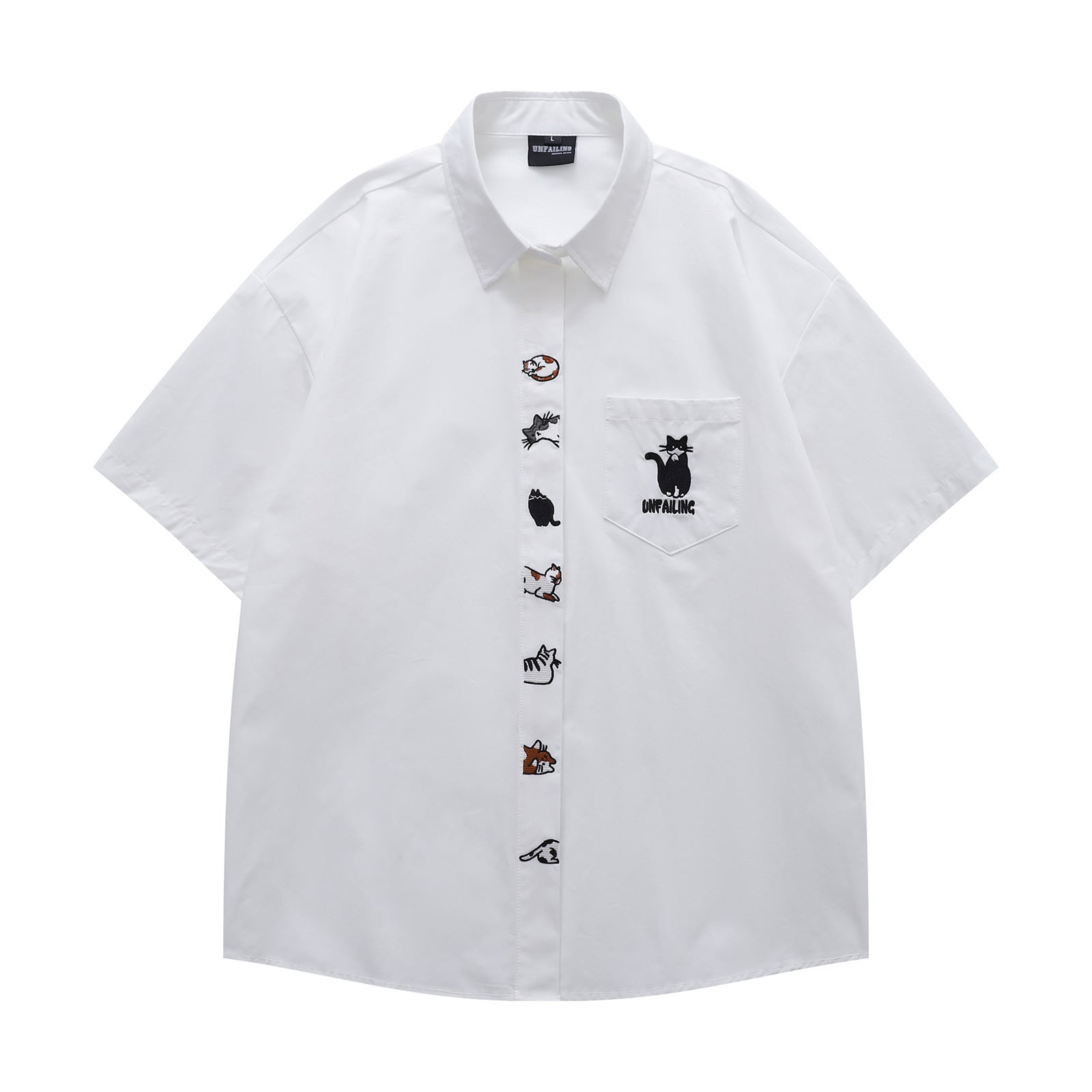 𝔼mbro 𝕊hirt𒉽趣味貓咪繡花袖襯衫(白色)