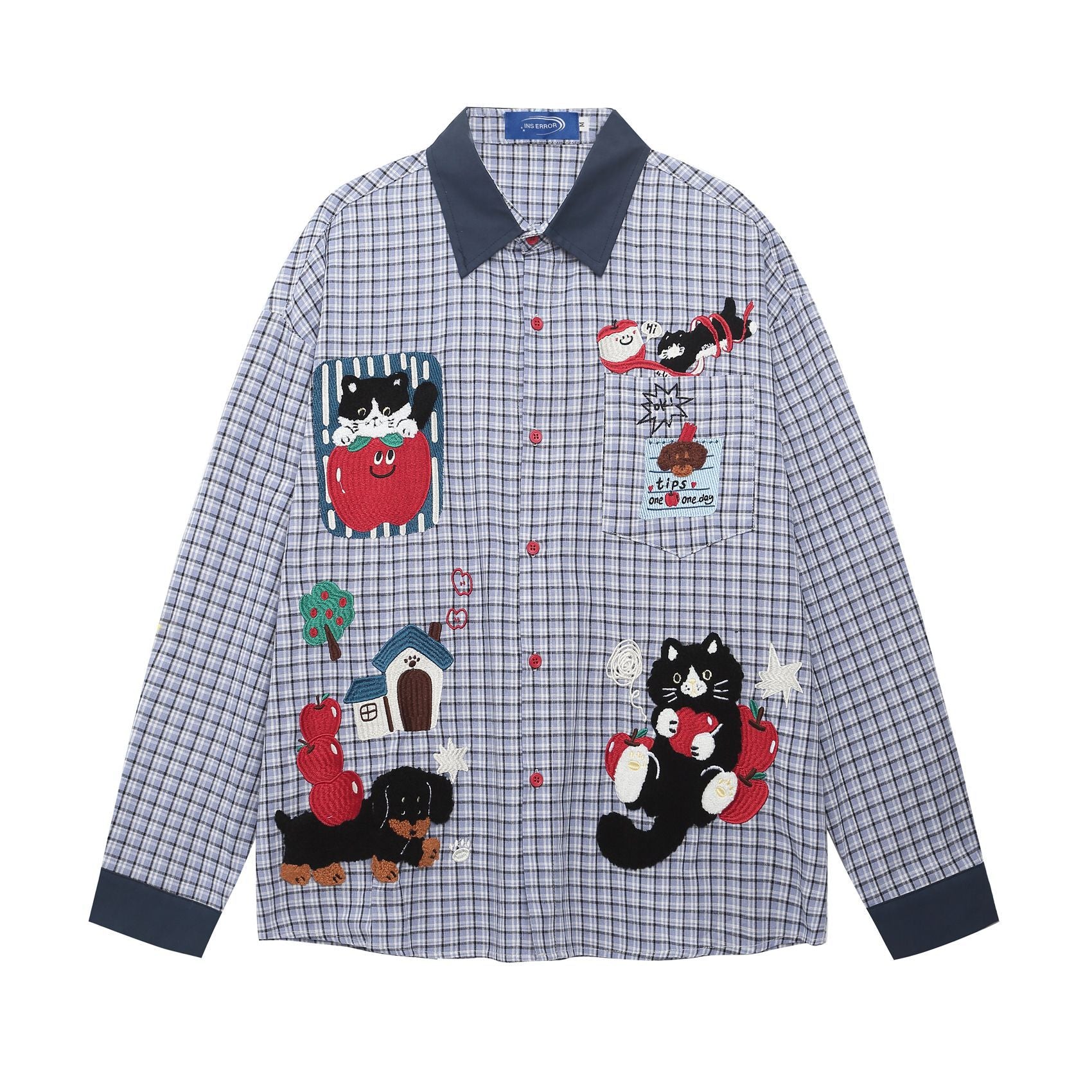 𝔼mbro 𝕊hirt𒉽2025秋冬貓咪刺繡寬鬆襯衫外套S-80