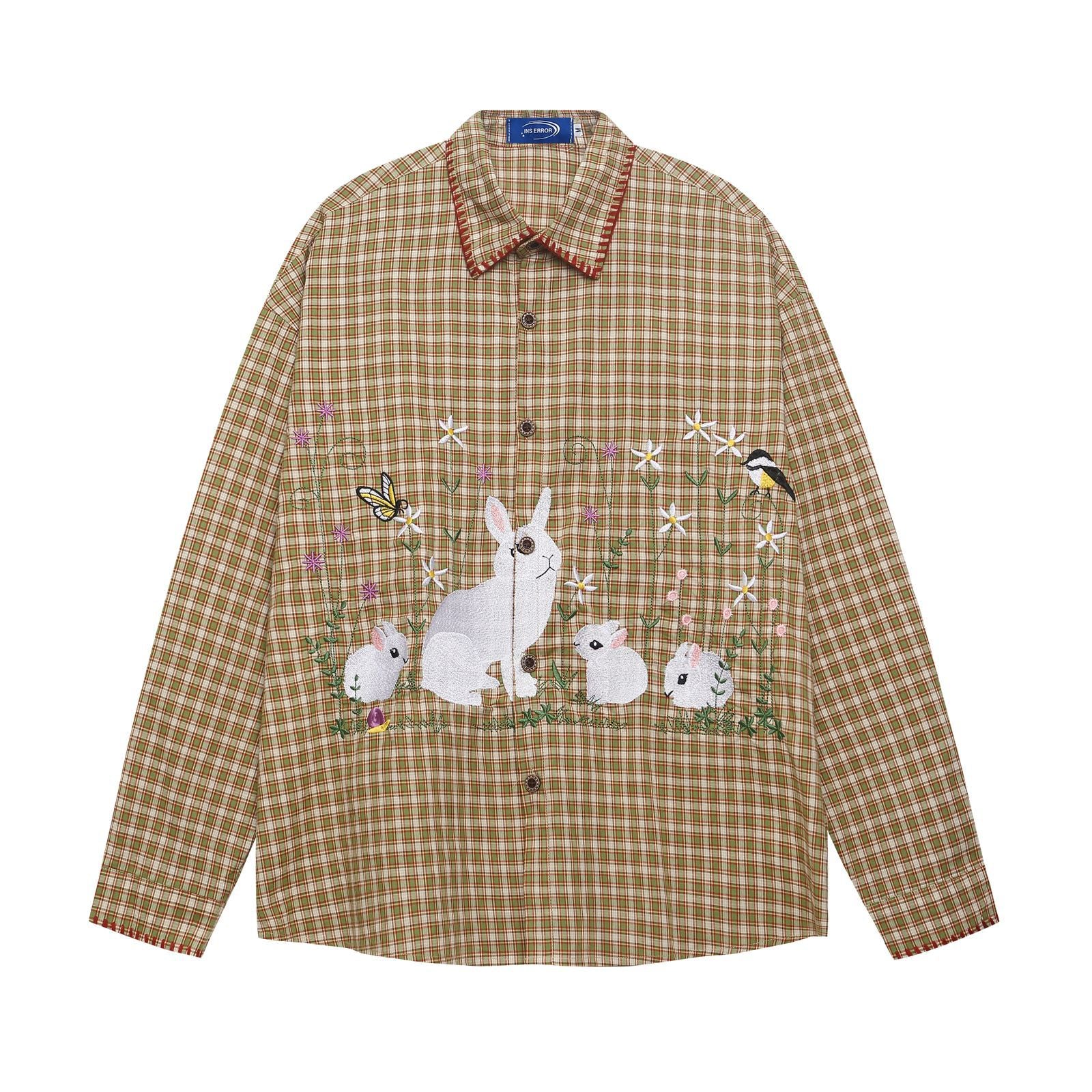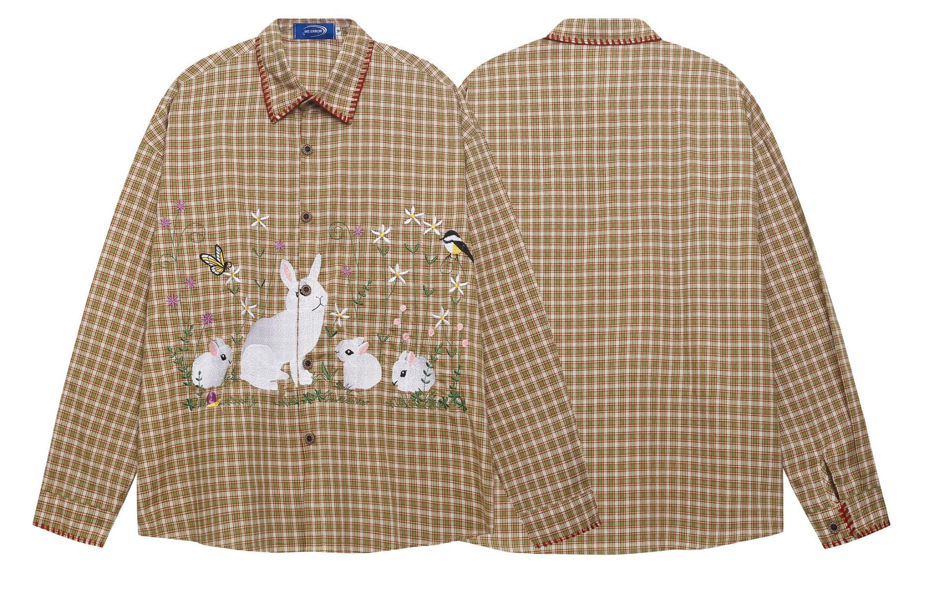 𝔼mbro 𝕊hirt𒉽2025秋冬兔子刺繡寬鬆襯衫N-8