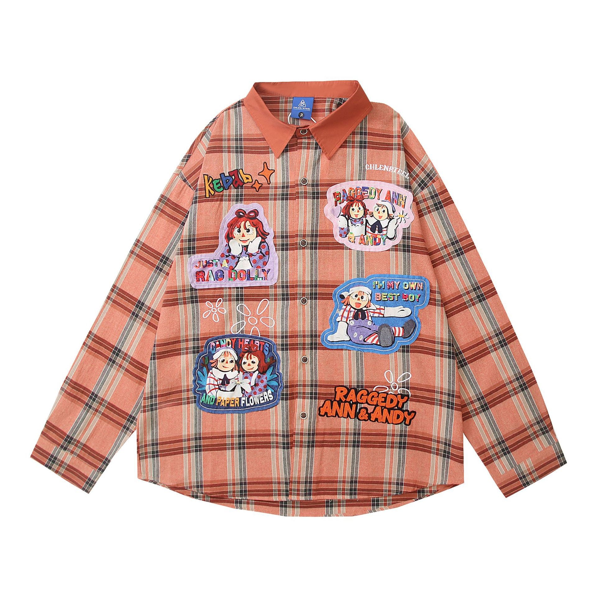𝔼mbro 𝕊hirt𒉽2025秋冬可愛圖案刺繡寬鬆襯衫外套 C-92