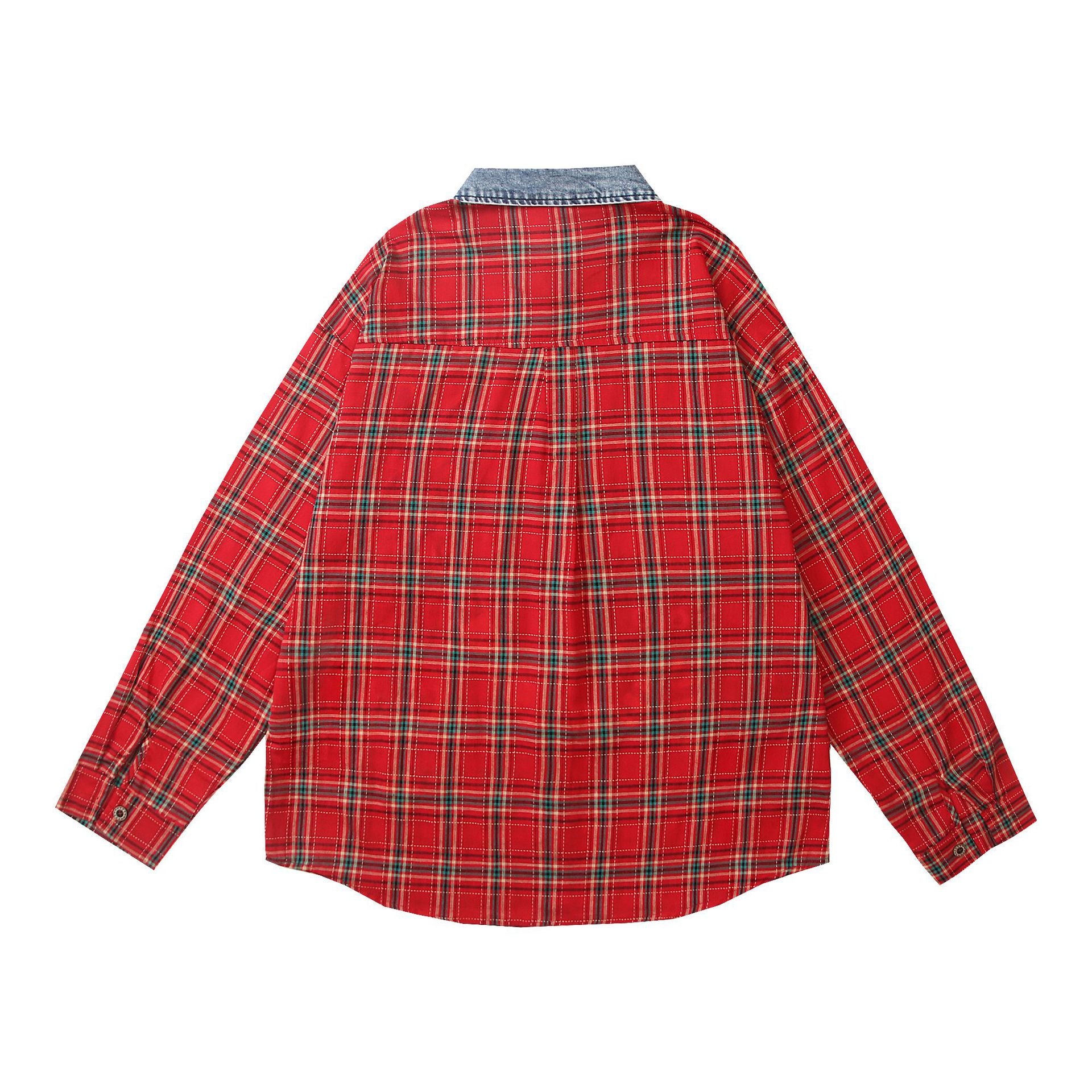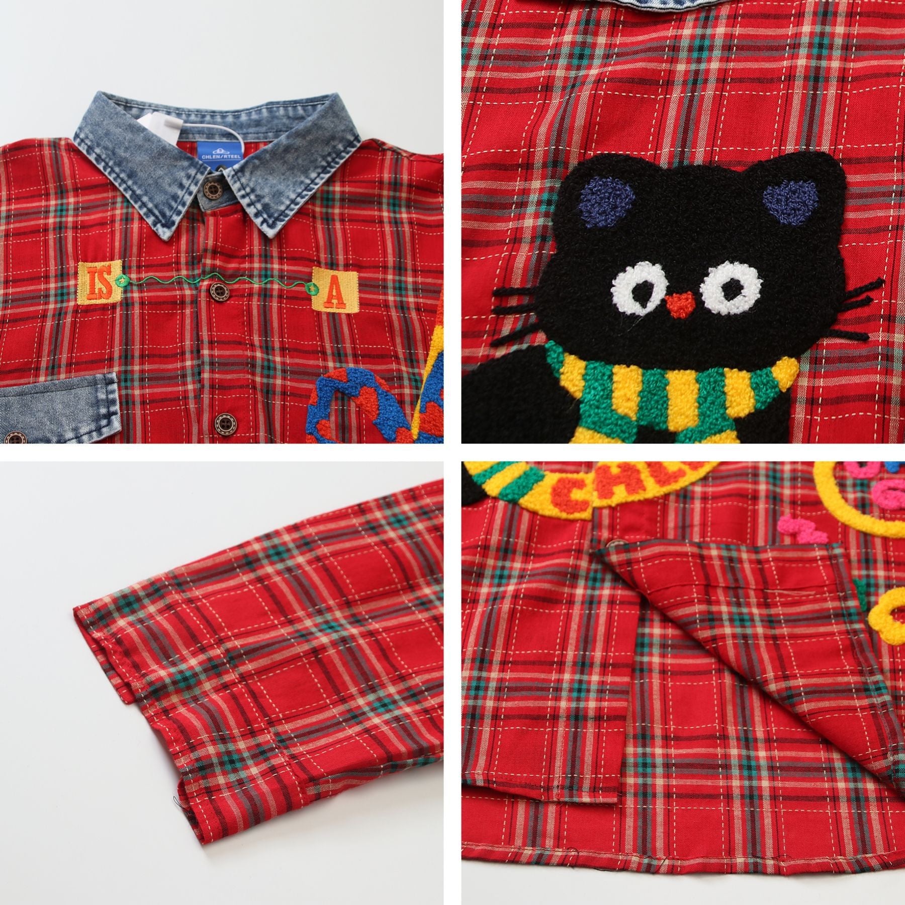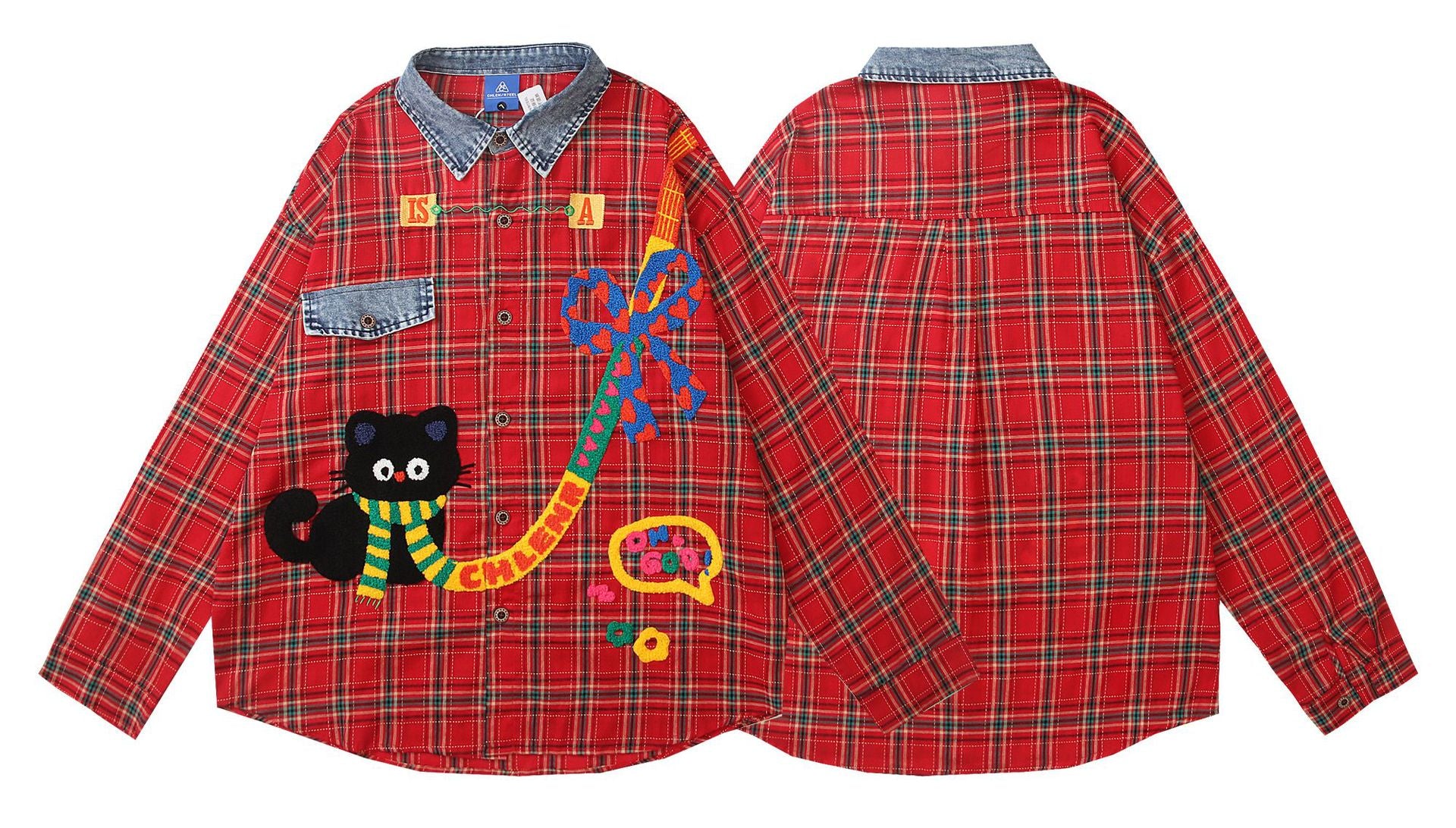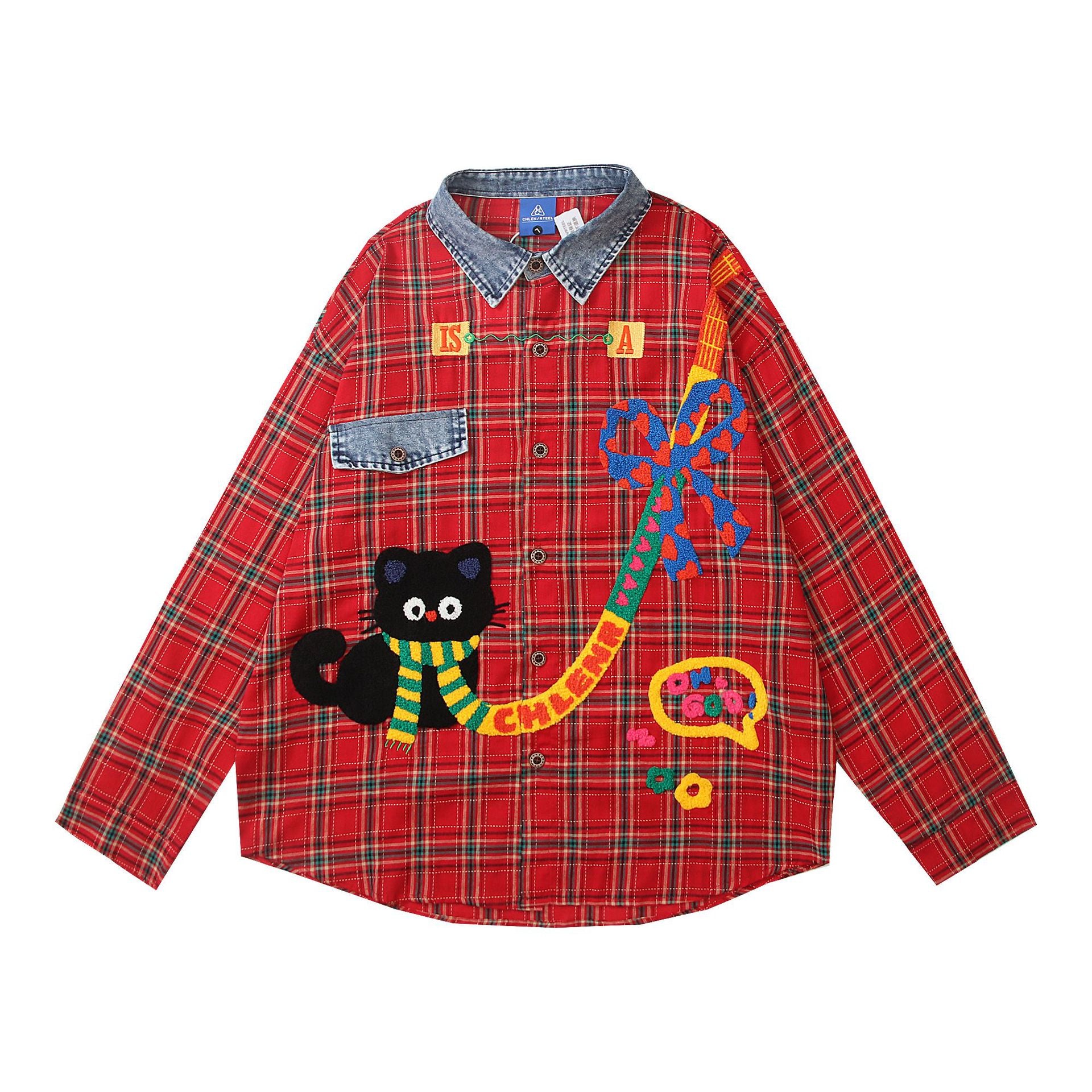 𝔼mbro 𝕊hirt𒉽2025秋冬卡通小貓刺繡寬鬆襯衫外套C-69