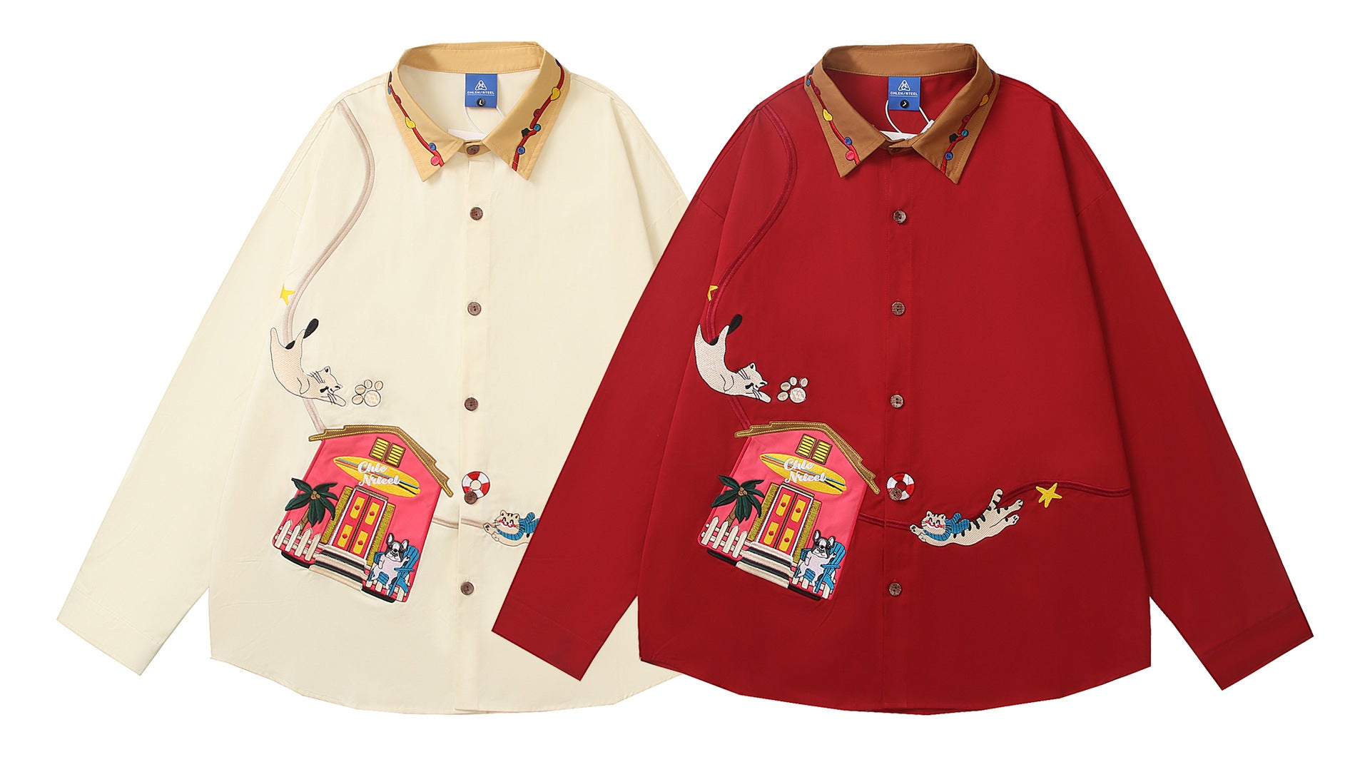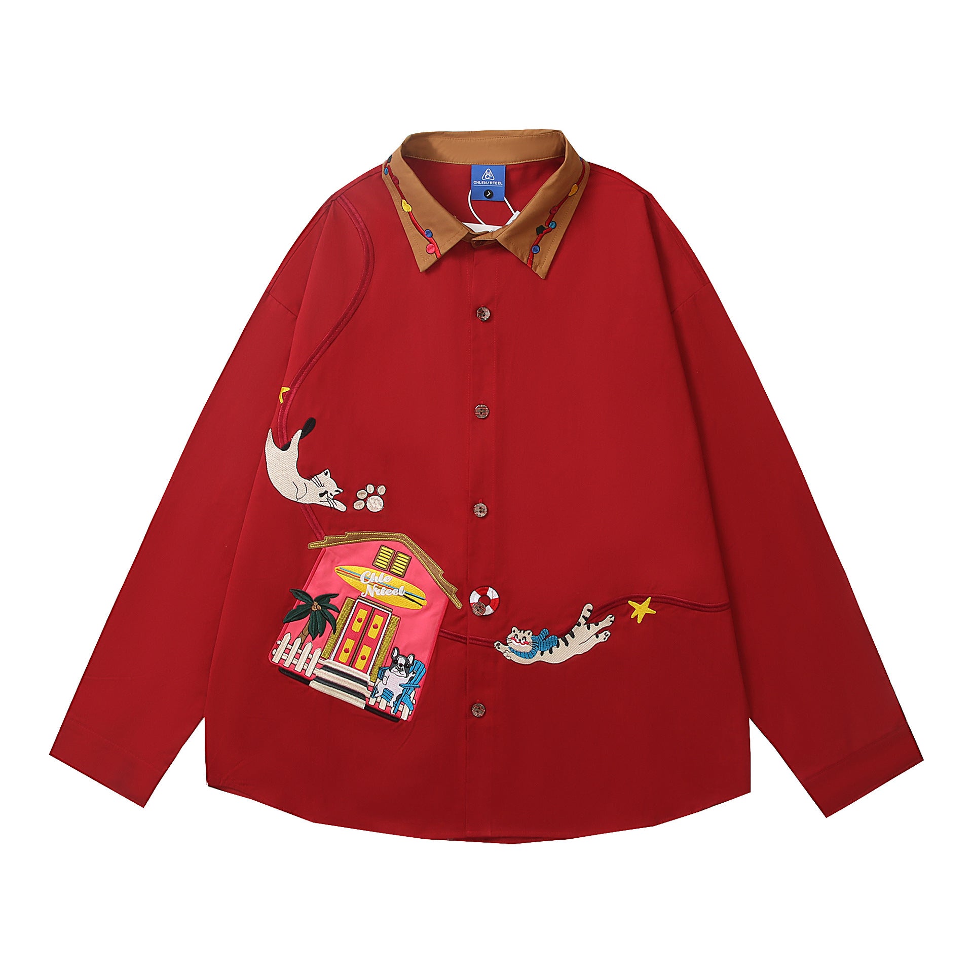 𝔼mbro 𝕊hirt𒉽2025秋冬可愛動物刺繡寬鬆襯衫外套HL-09