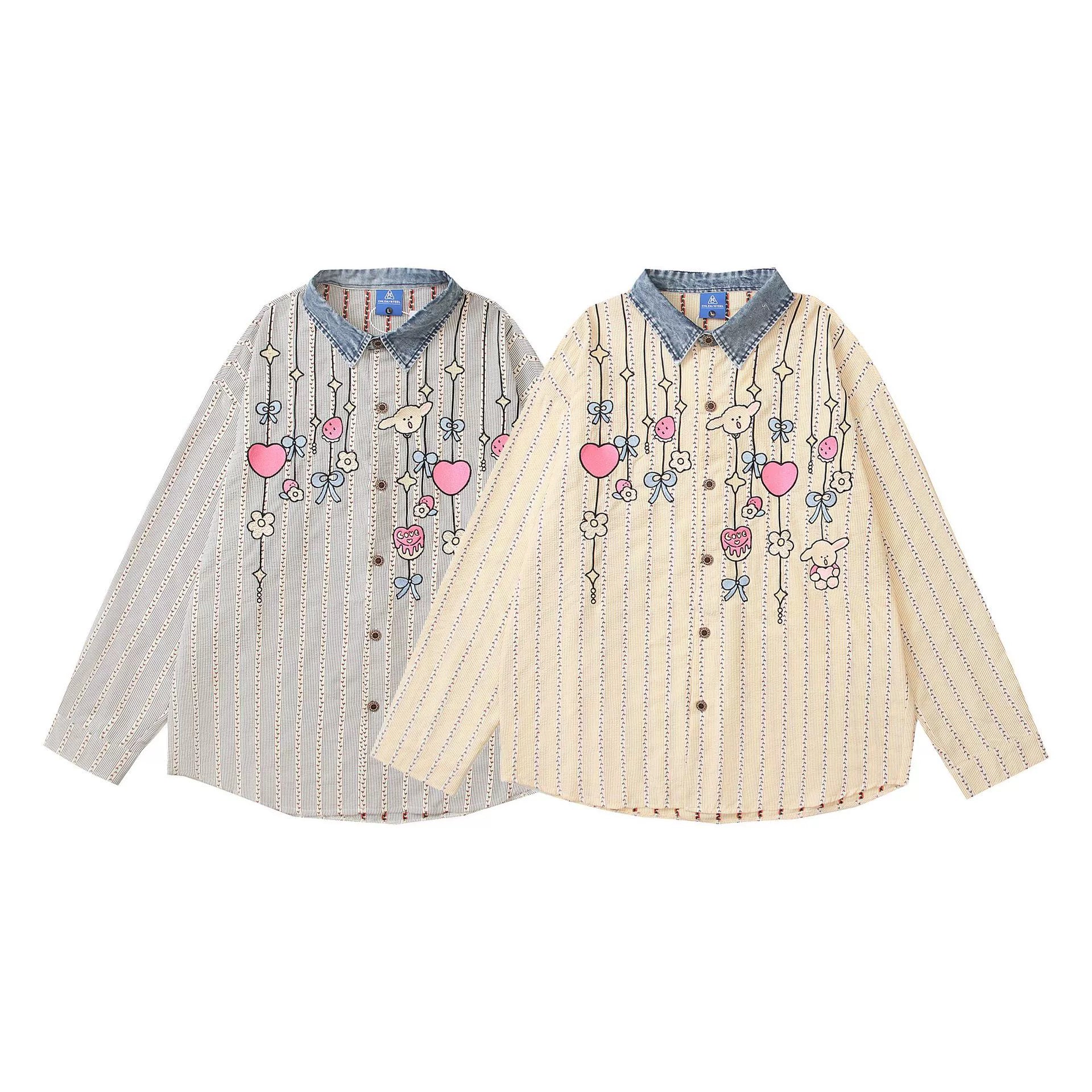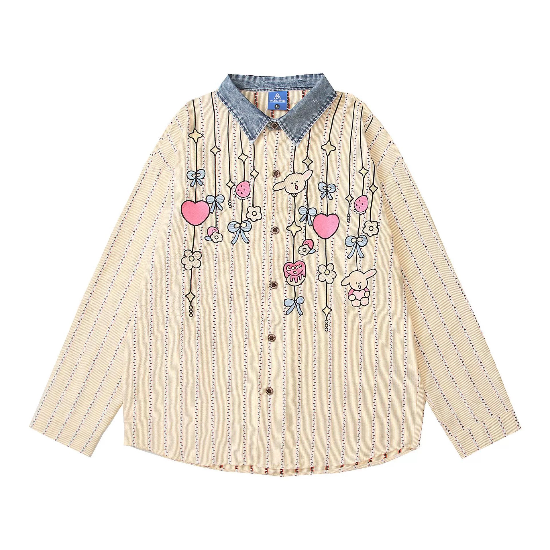 𝔼mbro 𝕊hirt𒉽2025秋冬可愛圖案刺繡寬鬆襯衫外套C-81