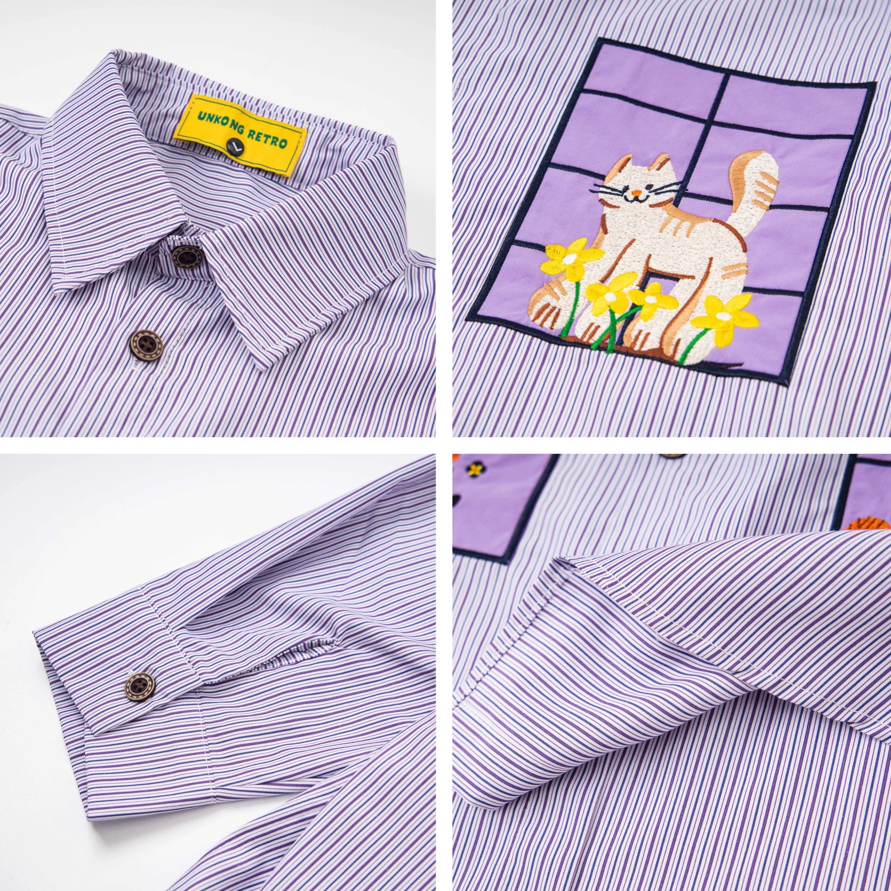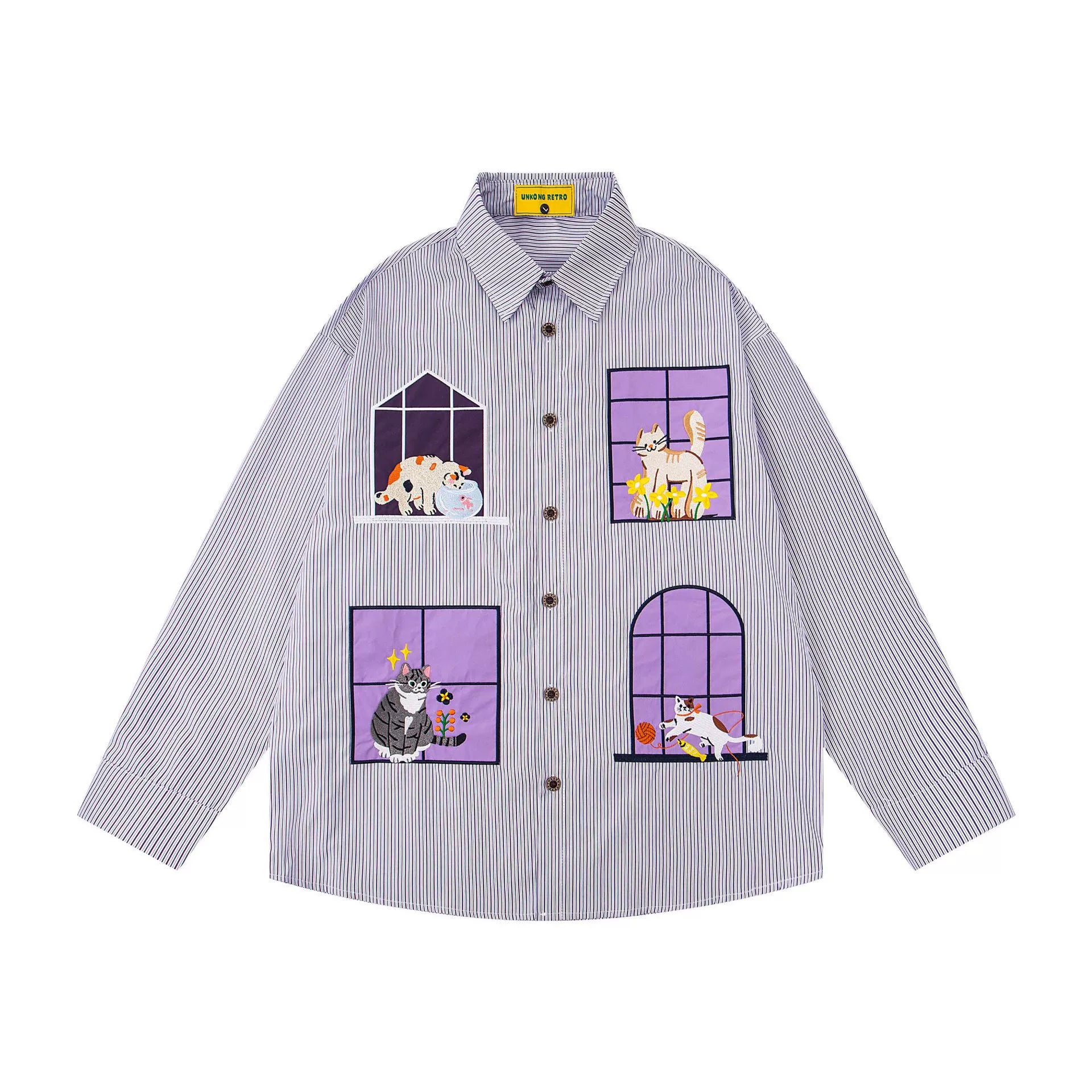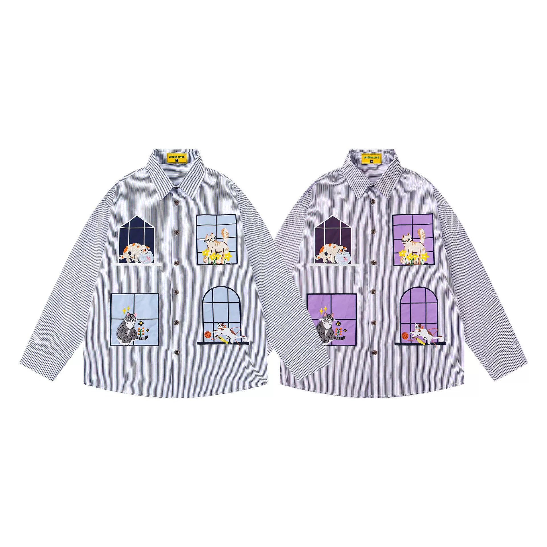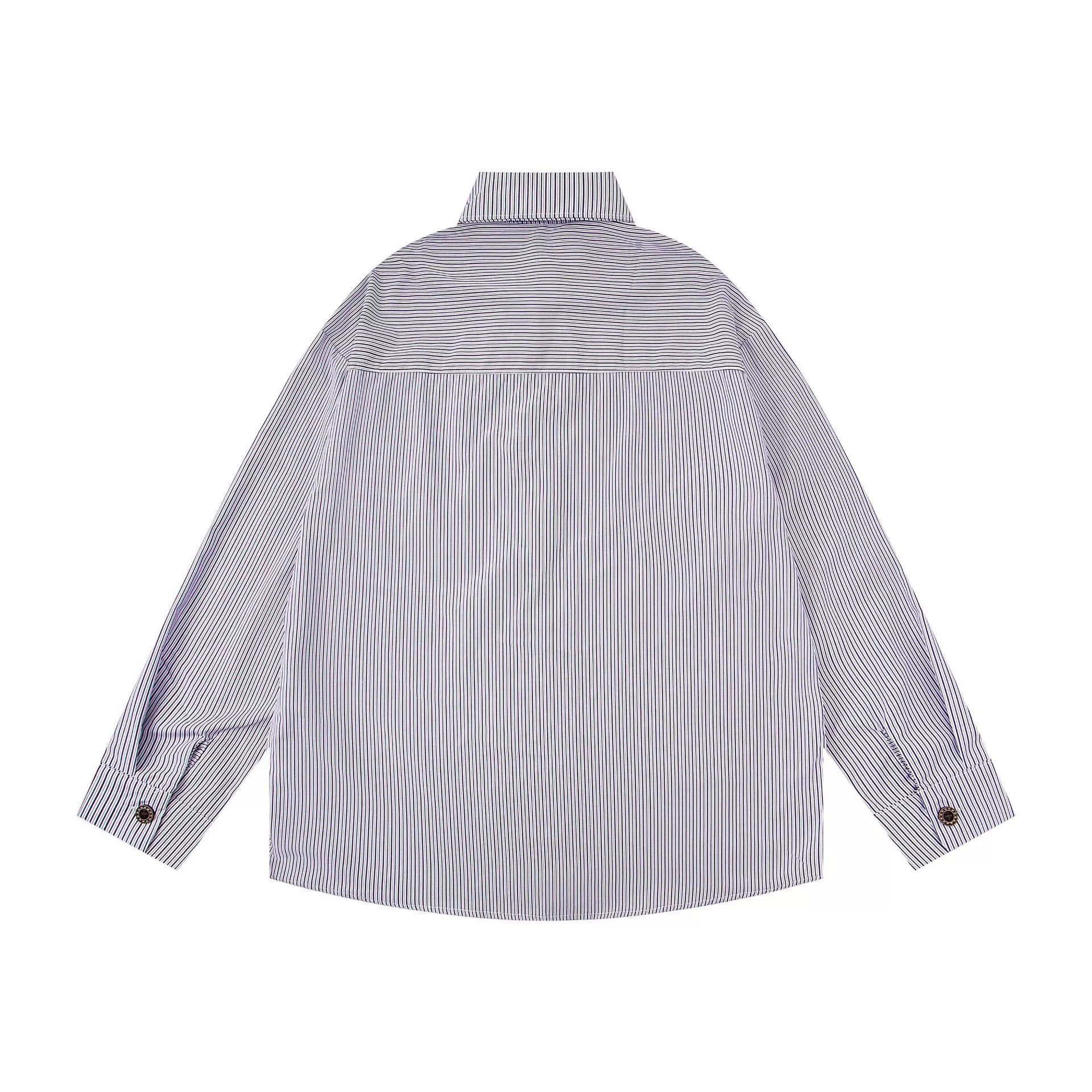 𝔼mbro 𝕊hirt𒉽2025秋冬小貓圖案刺繡條紋襯衫N-46