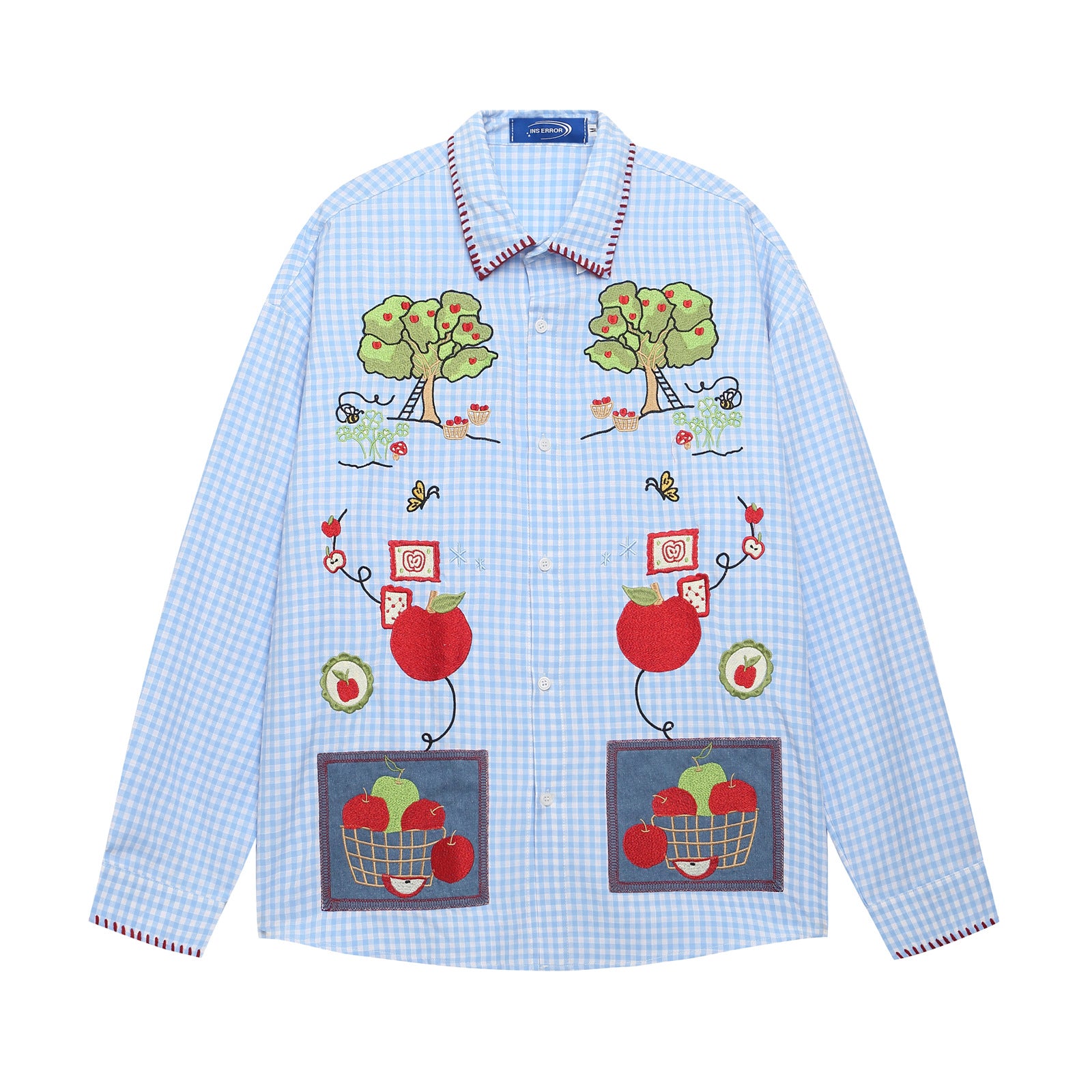 𝔼mbro 𝕊hirt𒉽2025秋冬趣味圖案刺繡寬鬆襯衫C-89
