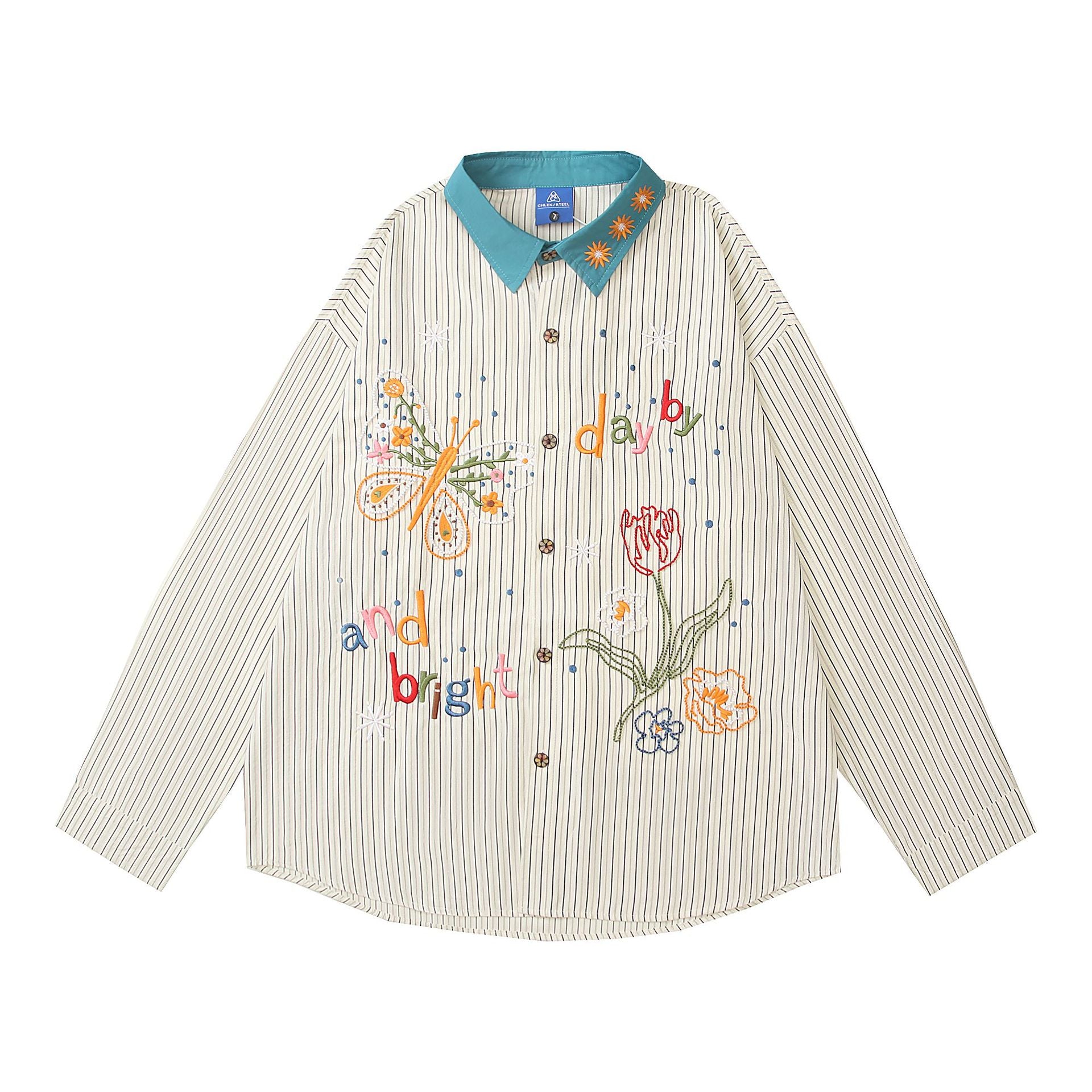 𝔼mbro 𝕊hirt𒉽2025秋冬復古撞色花朵刺繡襯衫C-16