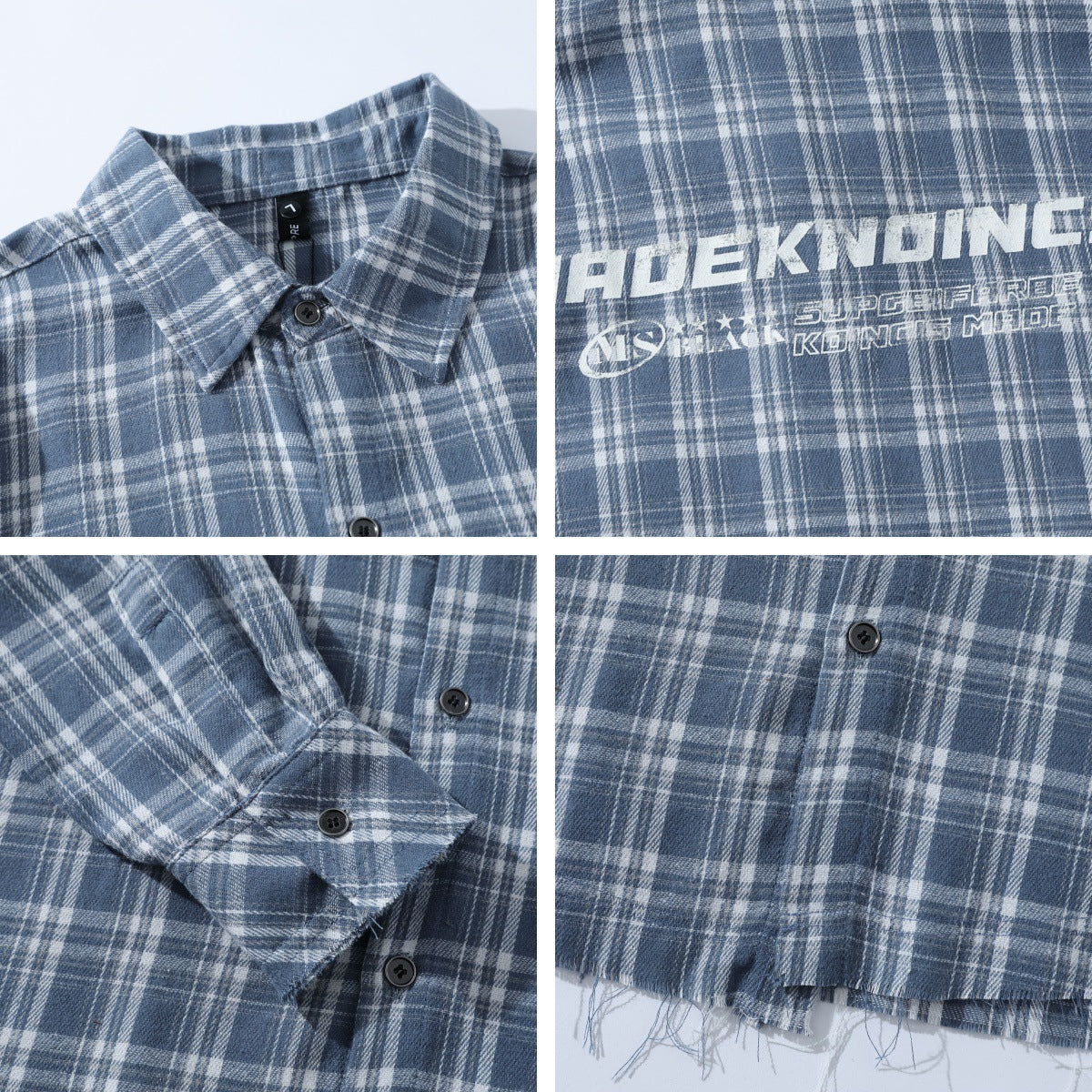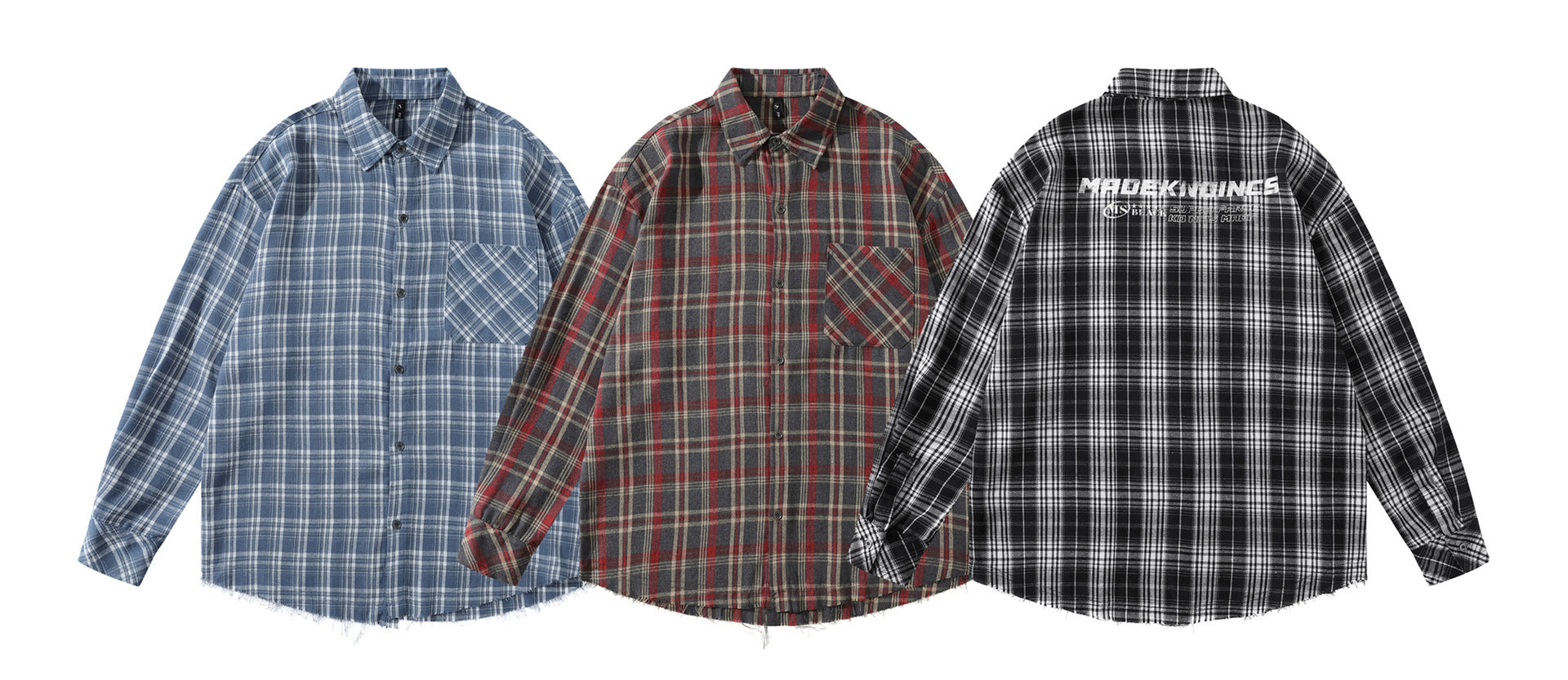 𝔼mbro 𝕊hirt𒉽2025秋冬復古格子寬鬆襯衫JD-8