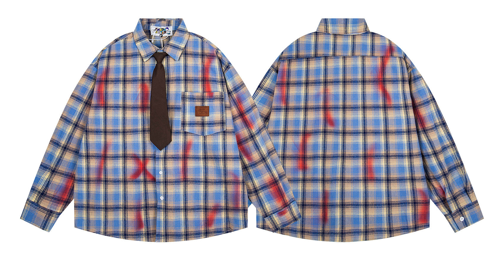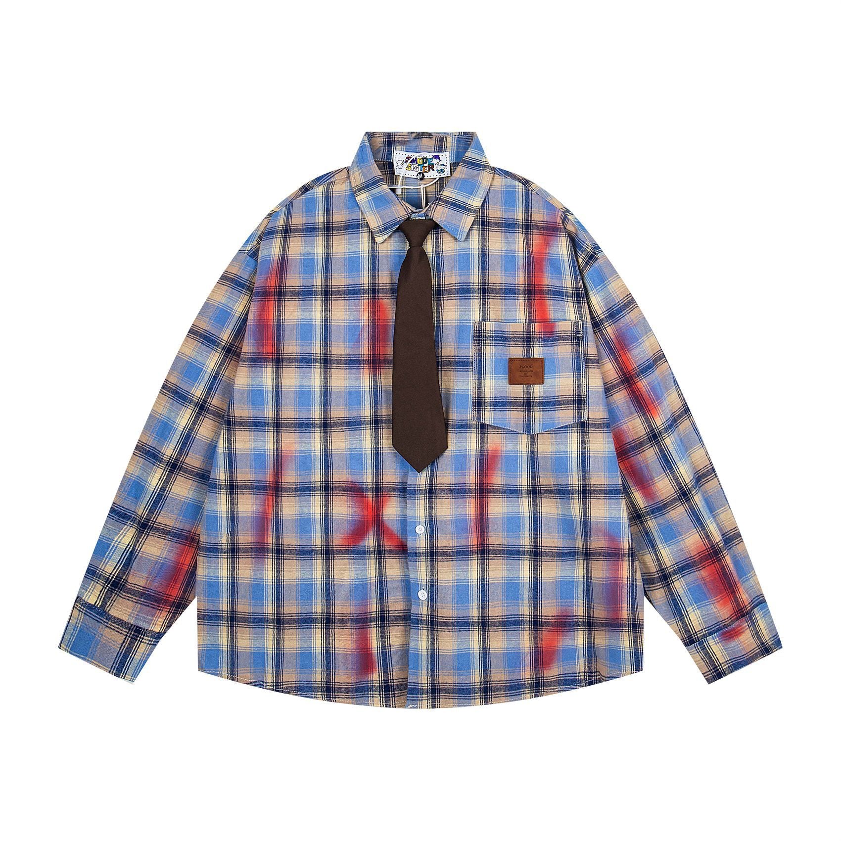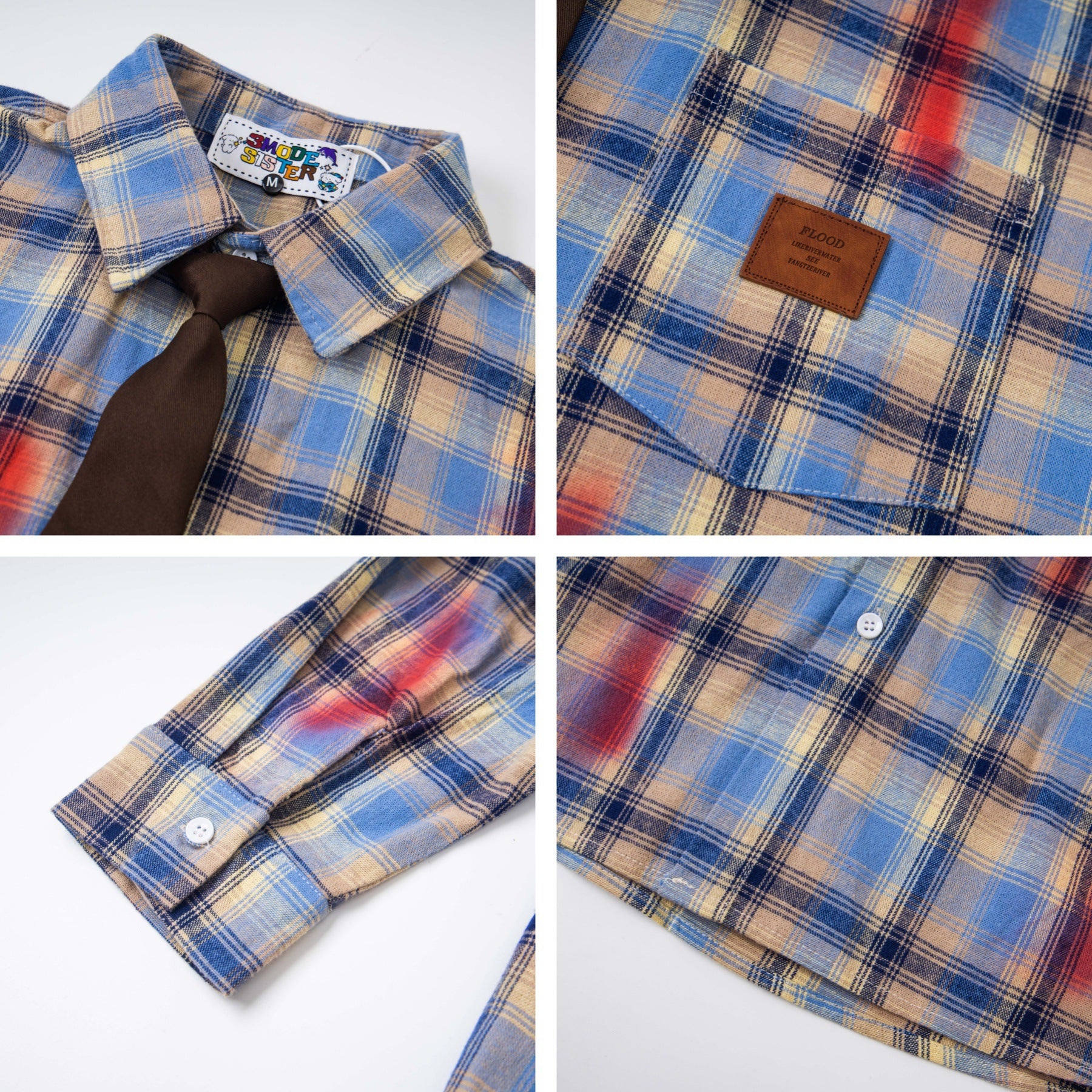 𝔼mbro 𝕊hirt𒉽2025秋冬領帶系列格子寬鬆襯衫M-24