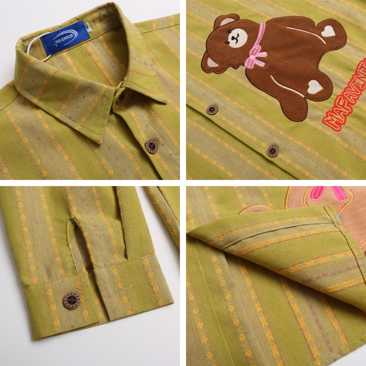 𝔼mbro 𝕊hirt𒉽2025秋冬日式可愛圖案刺繡襯衫IN-58