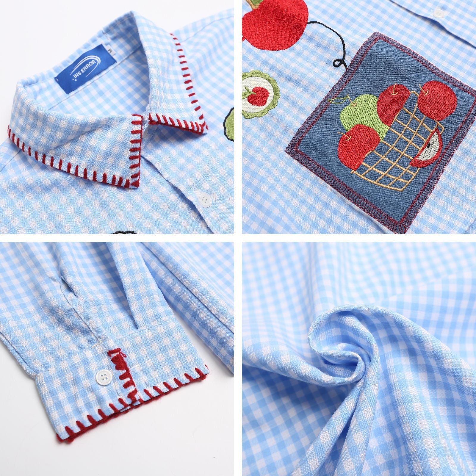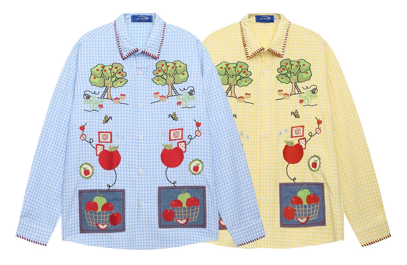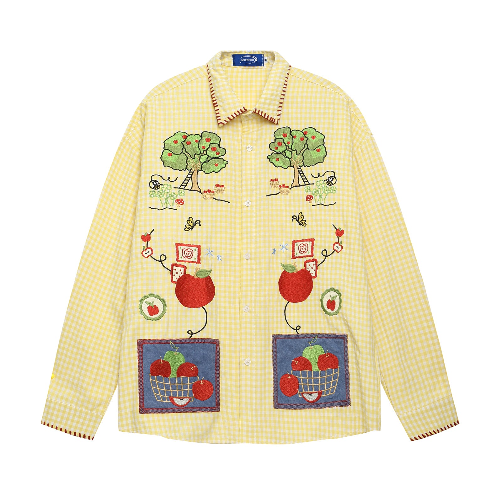 𝔼mbro 𝕊hirt𒉽2025秋冬趣味圖案刺繡寬鬆襯衫C-89