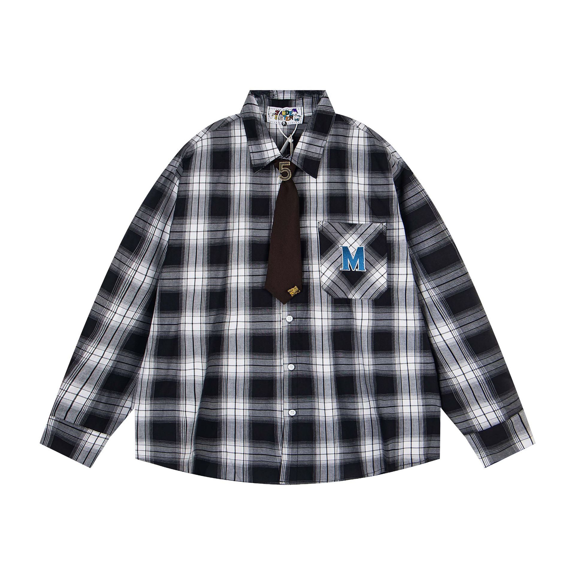 𝔼mbro 𝕊hirt𒉽2025秋冬領帶系列格子寬鬆襯衫外套MO-16