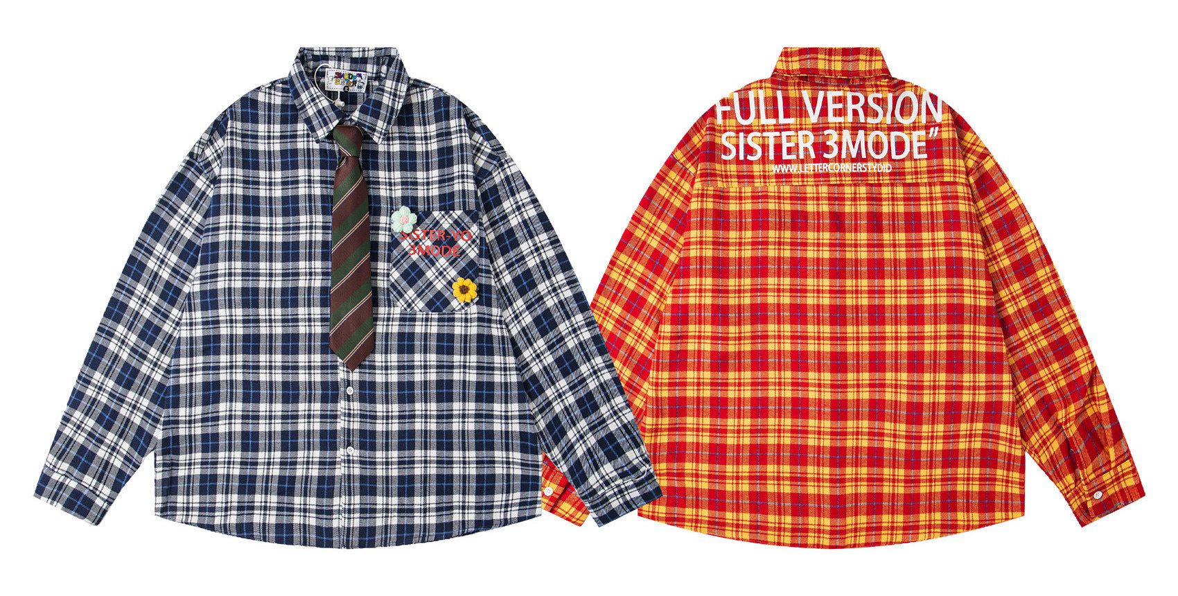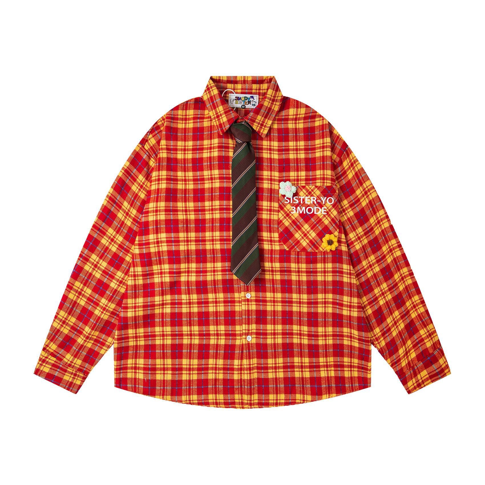 𝔼mbro 𝕊hirt𒉽2025秋冬領帶系列格子寬鬆襯衫外套MO-08