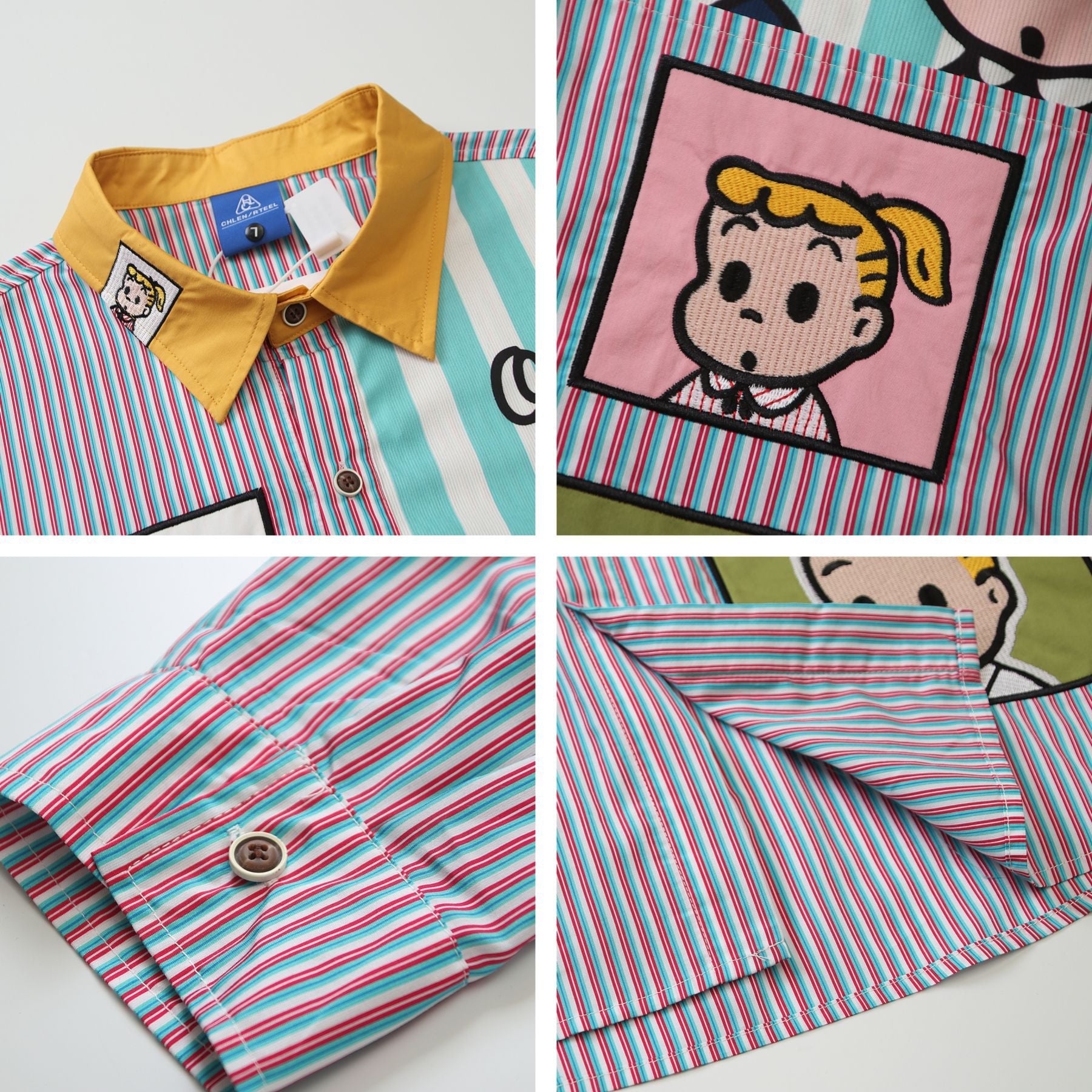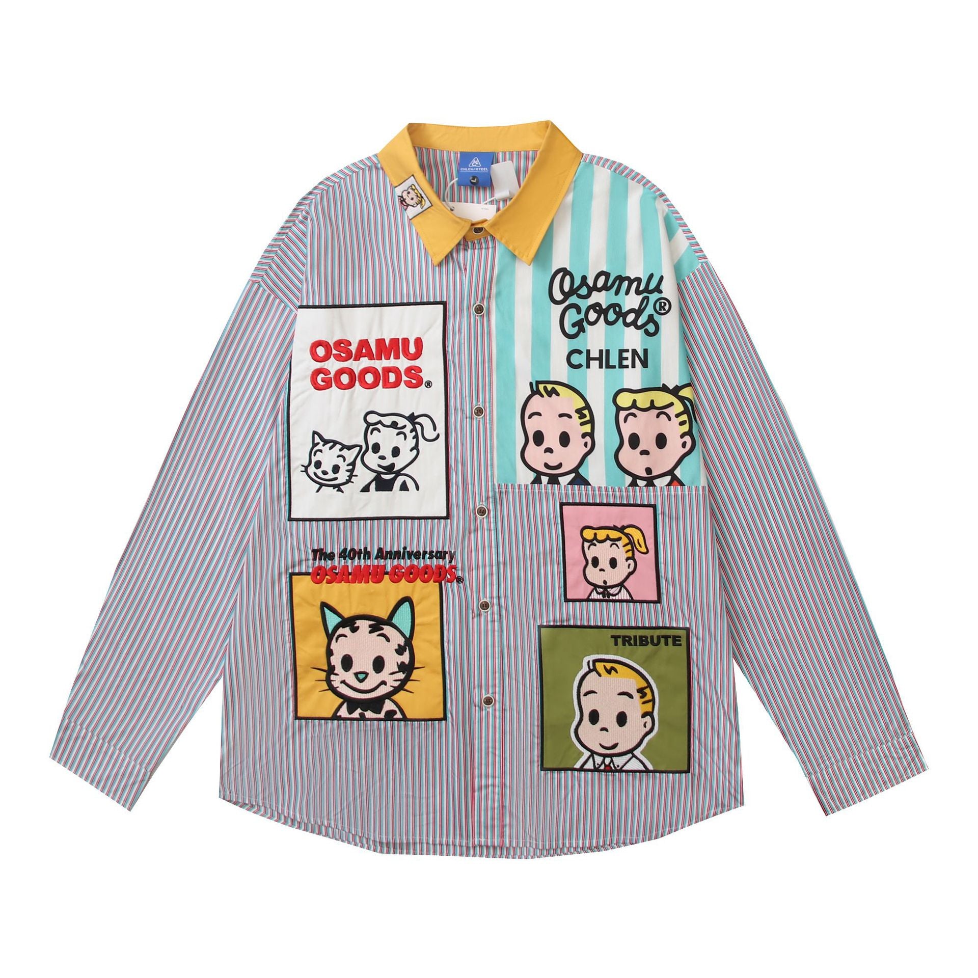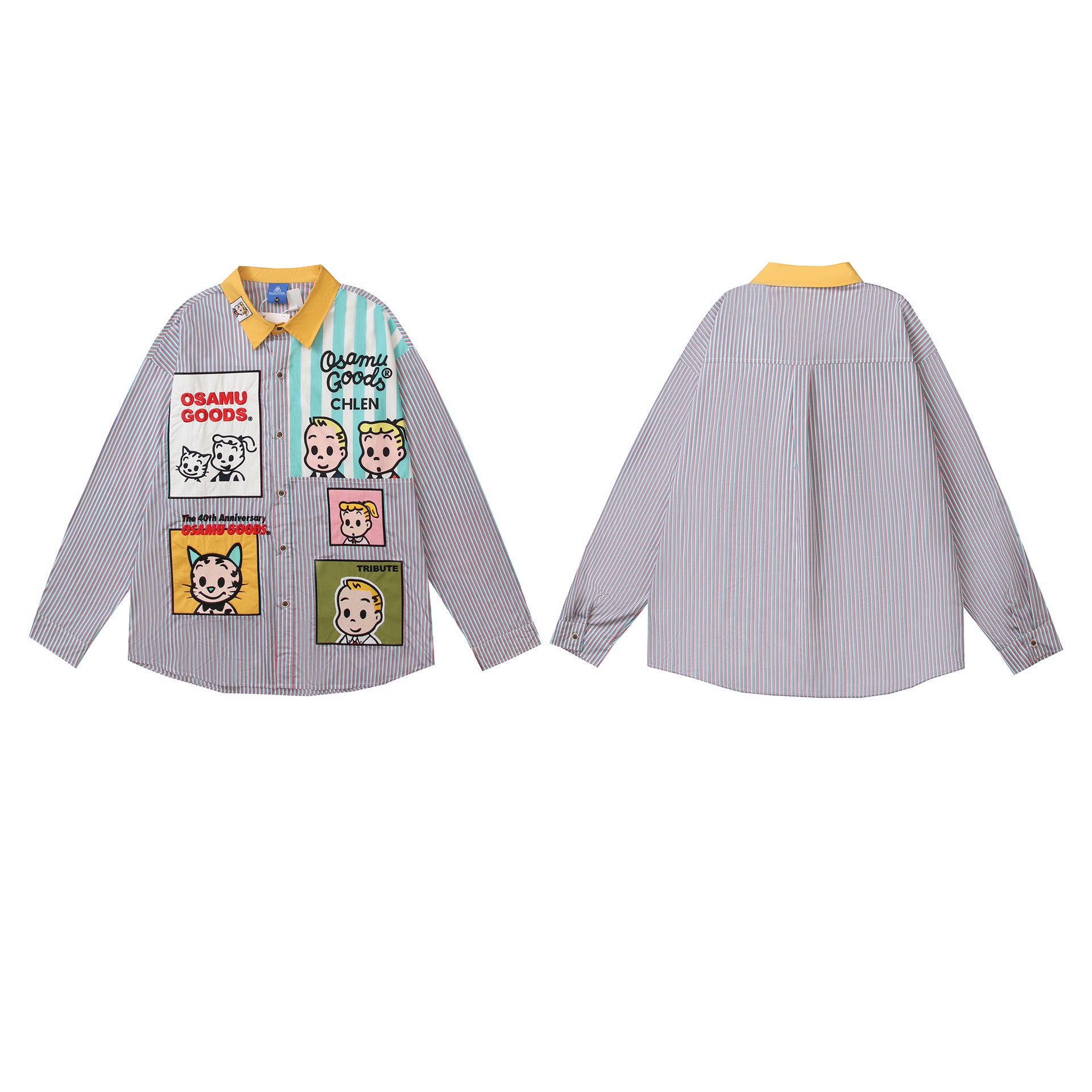 𝔼mbro 𝕊hirt𒉽2025秋冬卡通貼布繡拼接寬鬆襯衫C-27