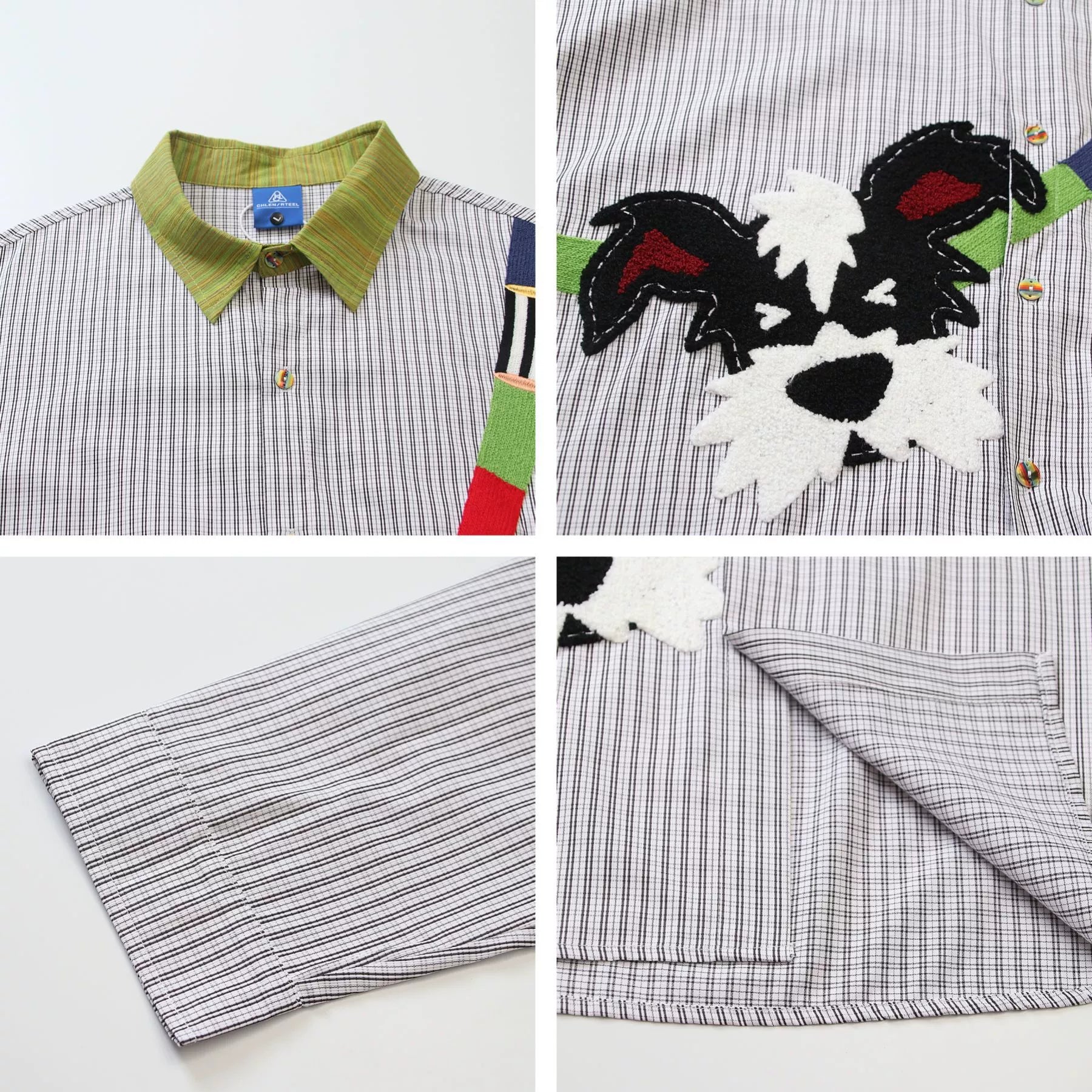 𝔼mbro 𝕊hirt𒉽2025秋冬小狗刺繡寬鬆襯衫外套C-12