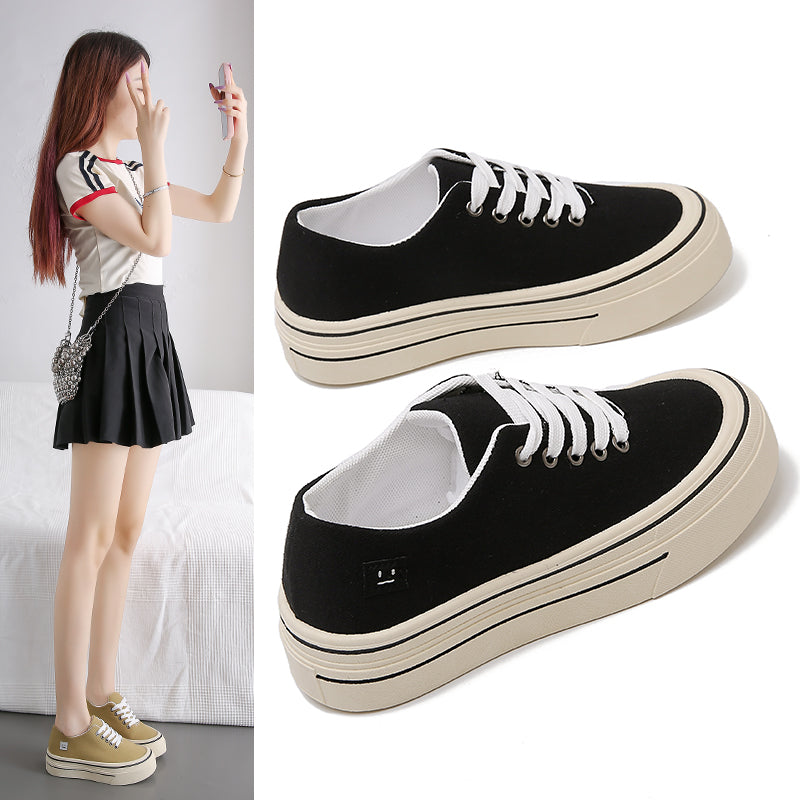 ♛𝔽𝕦𝕤𝕚𝕠𝕟 𝔽𝕠𝕔𝕦𝕤☢︎ꜰʟᴇxɪɴɢ-ꜱʜᴏᴇꜱ ♜✽𝟤𝟢𝟤𝟧✽ 春夏新款休閒百搭厚底增高𝟧ᴄᴍ帆布鞋 女款 (35-40號)ᴊ𝟧𝟥