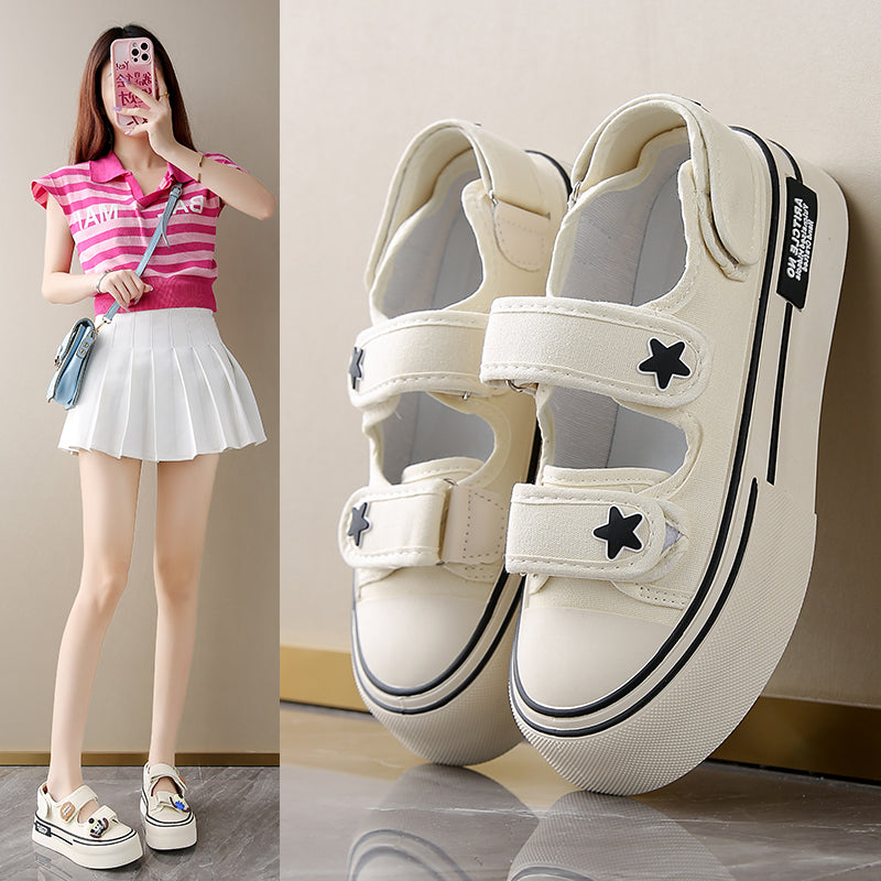 ♛𝔽𝕦𝕤𝕚𝕠𝕟 𝔽𝕠𝕔𝕦𝕤☢︎ꜰʟᴇxɪɴɢ-ꜱʜᴏᴇꜱ ♜✽𝟤𝟢𝟤𝟧✽ 春夏新款超透氣帆布包腳涼鞋增高3cm up 女款 (35-40號)ᴊᴅ𝟧𝟦