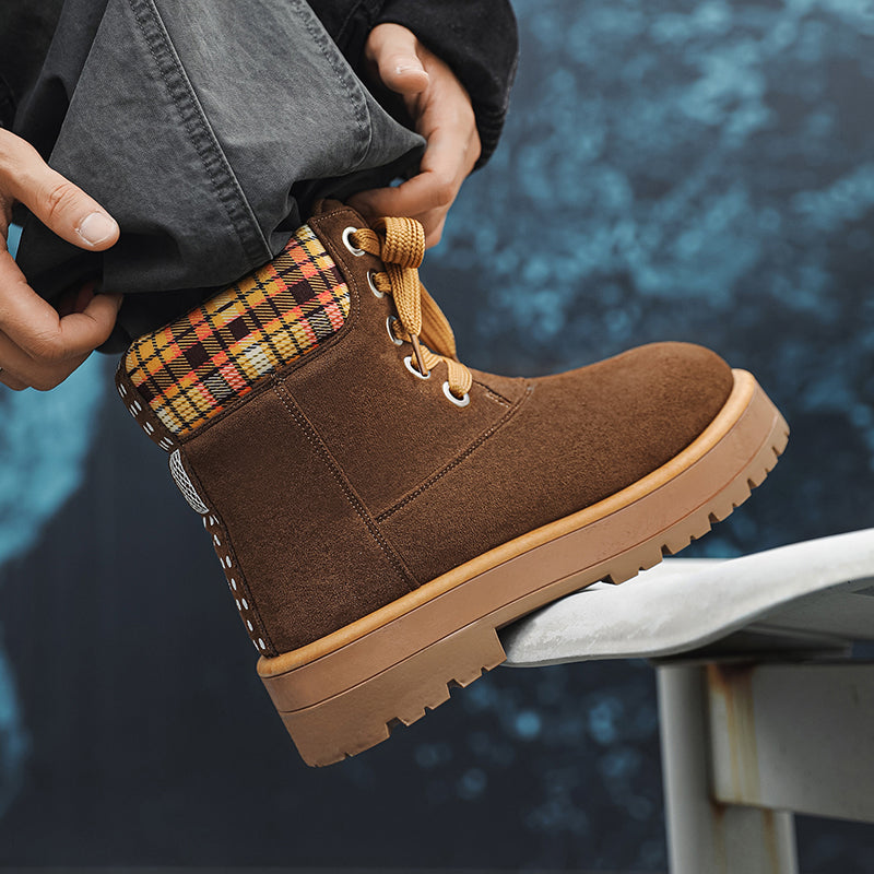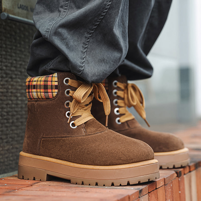 ♛𝔽𝕦𝕤𝕚𝕠𝕟 𝔽𝕠𝕔𝕦𝕤☢︎ᴄᴀꜱᴜᴀʟ ᴅʀᴇꜱꜱ ♜✽2026✽ 復古風高筒格子領雪地五孔靴 男女款 情侶款(大🦶到45碼)YH-06
