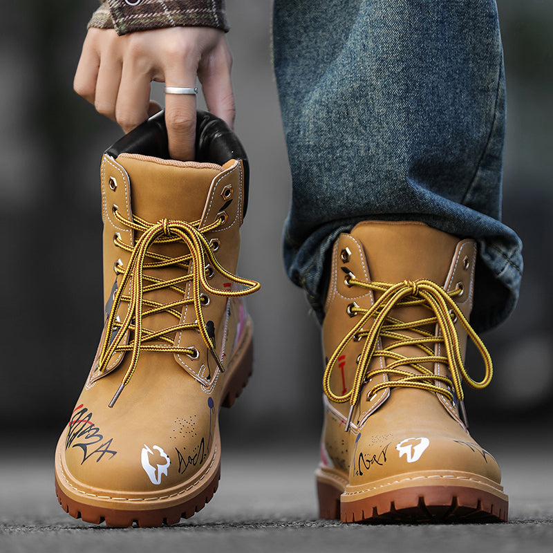 ♛𝔽𝕦𝕤𝕚𝕠𝕟 𝔽𝕠𝕔𝕦𝕤☢︎ᴄᴀꜱᴜᴀʟ ᴅʀᴇꜱꜱ ♜✽2026✽ 街頭塗鴉高筒隱形增高七孔男靴 YH-61