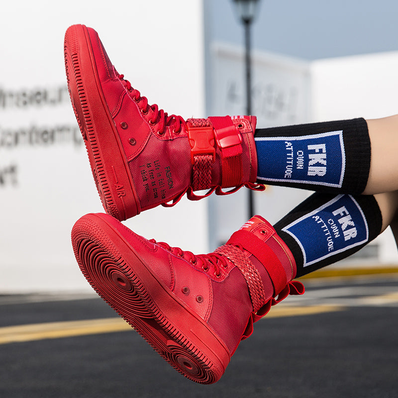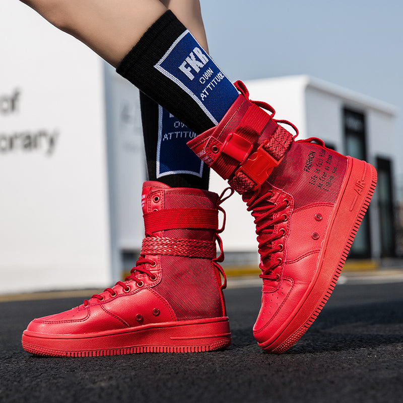 ♛𝔽𝕦𝕤𝕚𝕠𝕟 𝔽𝕠𝕔𝕦𝕤☢︎ᴄᴀꜱᴜᴀʟ ꜱɴᴇᴀᴋᴇʀ ♜✽2026✽ 運動風機能款長筒綁帶鞋帶版板鞋 男女鞋 情侶款(大🦶到46碼)JM-06