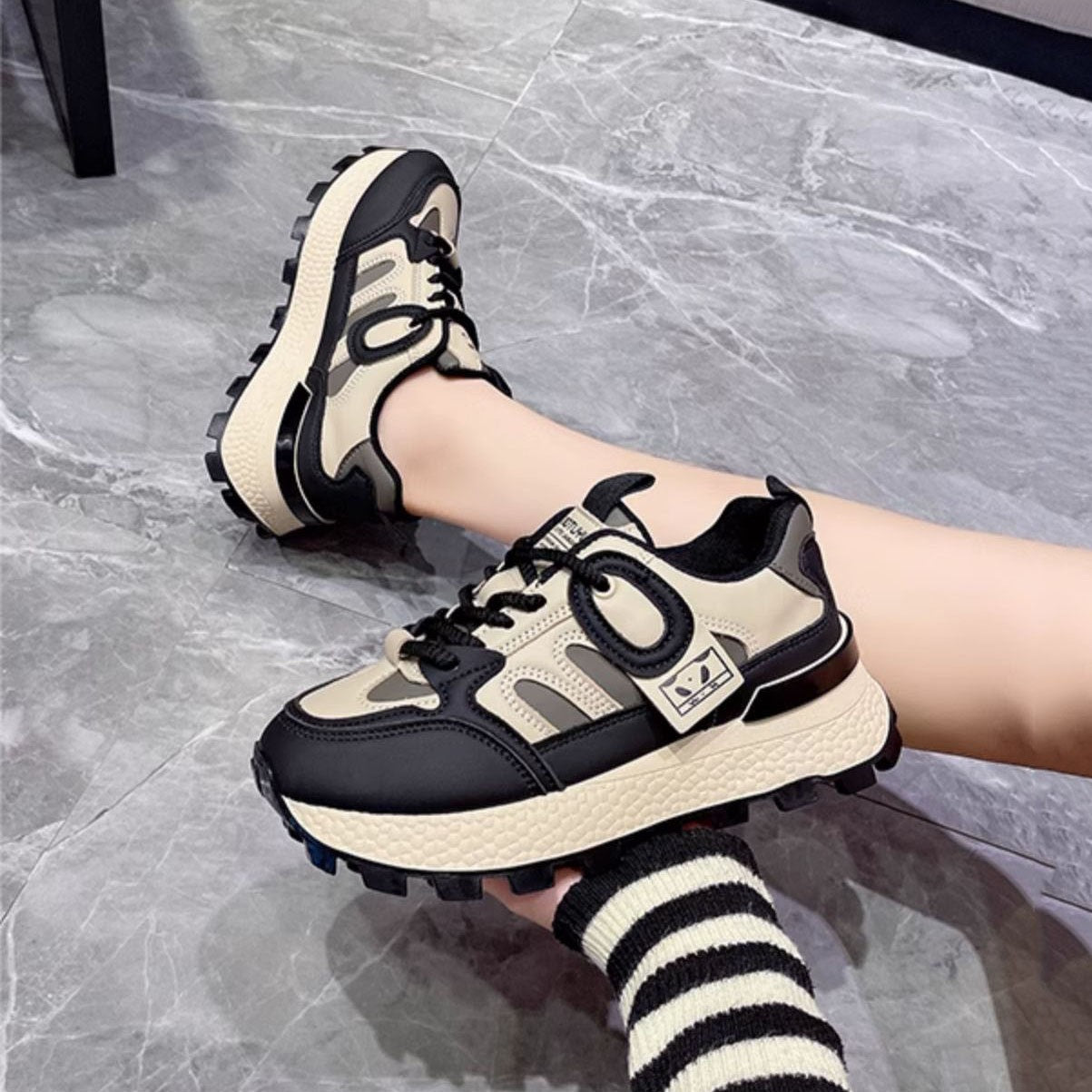 ♛𝔽𝕦𝕤𝕚𝕠𝕟 𝔽𝕠𝕔𝕦𝕤☢︎ꜰʟᴇxɪɴɢ-ꜱʜᴏᴇꜱ ♜✽𝟤𝟢𝟤𝟧✽ 夏季新款厚底M標休閒增高運動鞋 女款 (35-40號)D2