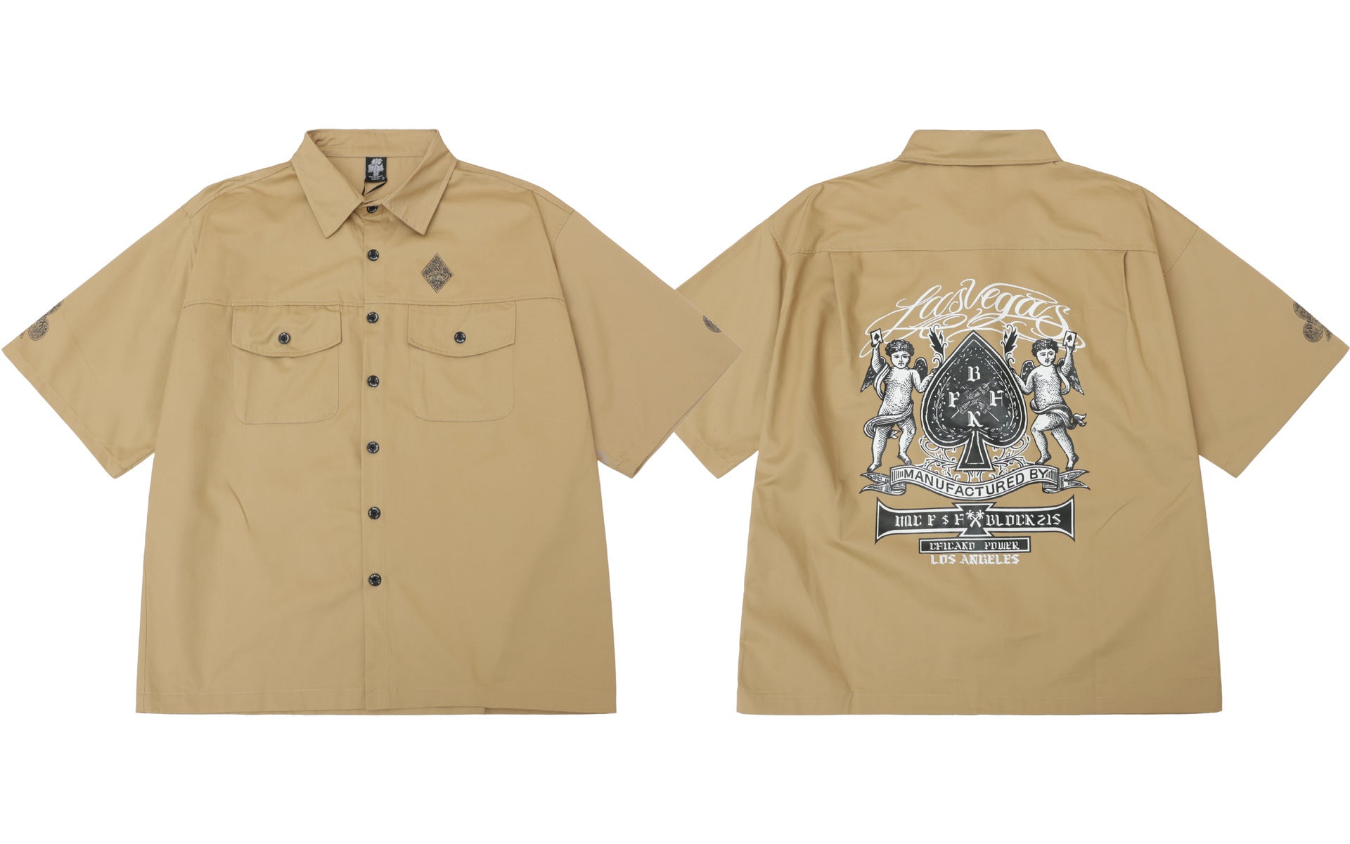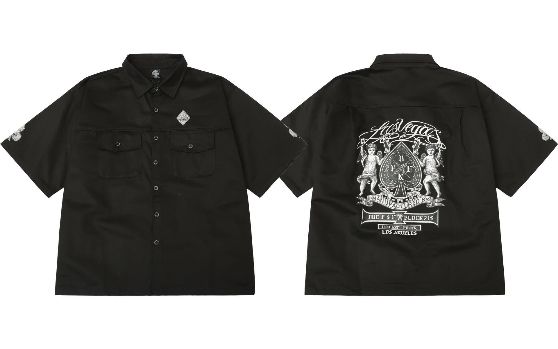 𝔽𝕦𝕤𝕚𝕠𝕟 𝔽𝕠𝕔𝕦𝕤-ᴄʜɪᴄᴀɴᴏ♠︎悍匪♠︎ 新款西海岸奇卡諾Chicano風格撲克印花工裝襯衫