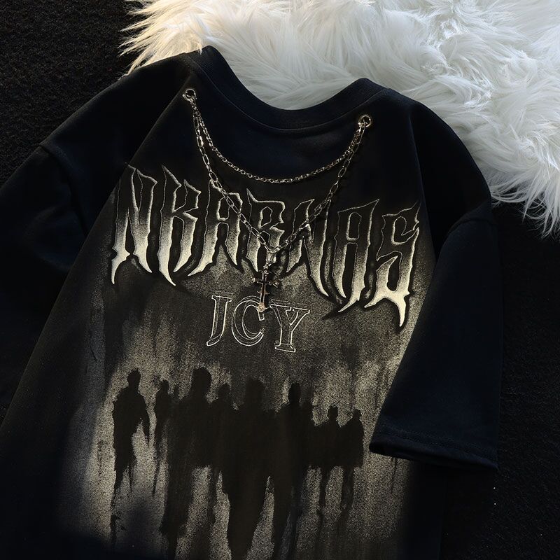 𝔽𝕦𝕤𝕚𝕠𝕟 𝔽𝕠𝕔𝕦𝕤 ✘ 歐美高街潮牌項鍊印花短袖t恤男女情侣款嘻哈hiphop寬鬆街頭上衣 W114