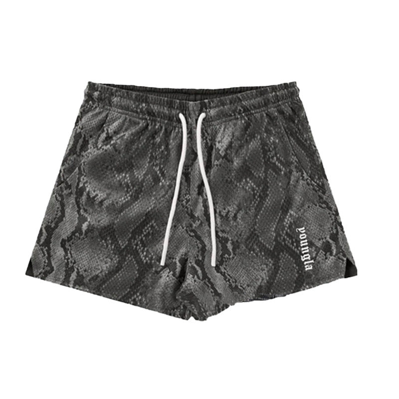 🔆𝔽𝕦𝕤𝕚𝕠𝕟 ☀ 𝔽𝕠𝕔𝕦𝕤 🔆美式YOUNG蟒纹健身短褲男款夏季網眼速乾户外運動跑步訓練沙灘短褲