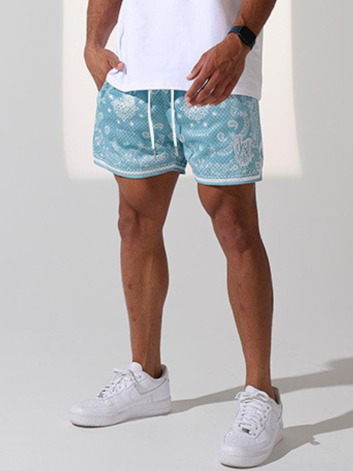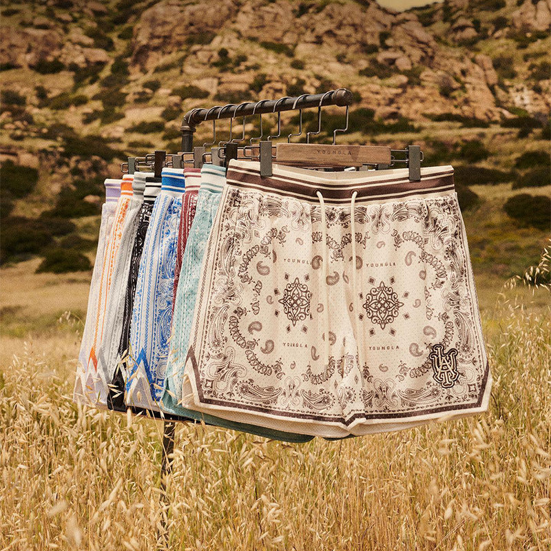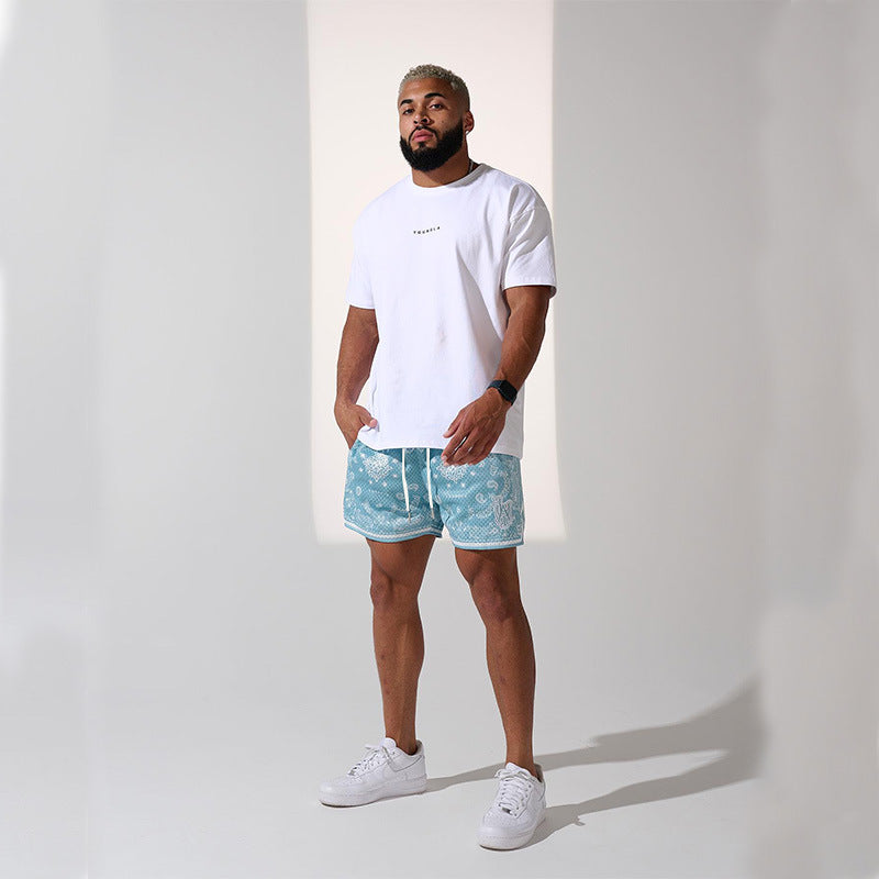 🔆𝔽𝕦𝕤𝕚𝕠𝕟 ☀ 𝔽𝕠𝕔𝕦𝕤 🔆 美式YOUNG 腰果花短褲夏季網眼透氣速乾運動休閒籃球不過膝夏季四分短褲(8色)