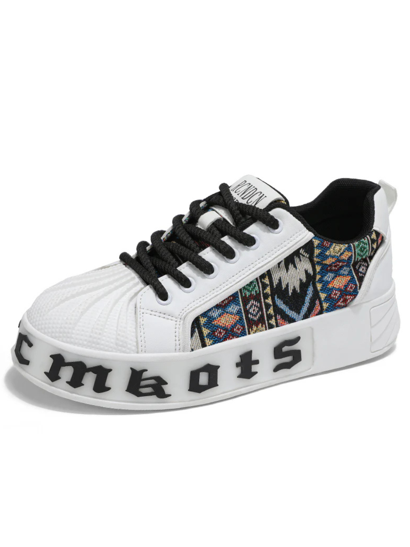 ♛𝔽𝕦𝕤𝕚𝕠𝕟 𝔽𝕠𝕔𝕦𝕤☢︎ꜱᴋᴀᴛᴇ ꜱʜᴏᴇꜱ ♜ ✽𝟤𝟢𝟤𝟧✽ 春夏新款圖騰風格貝殼頭增高厚底休閒板鞋 中性男女款 ʏɢ𝟫𝟣𝟪
