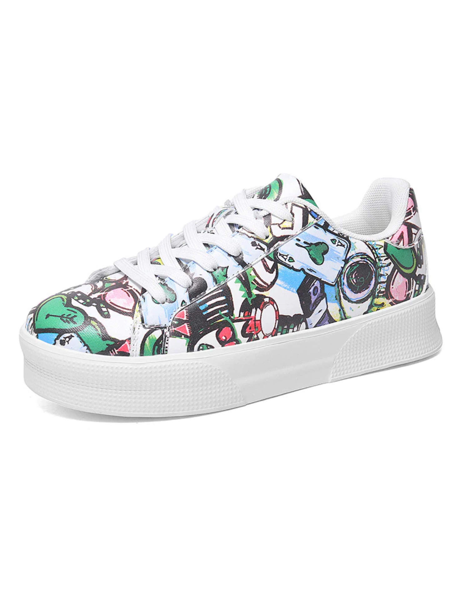 ♛𝔽𝕦𝕤𝕚𝕠𝕟 𝔽𝕠𝕔𝕦𝕤☢︎ꜱᴋᴀᴛᴇ ꜱʜᴏᴇꜱ ♜✽𝟤𝟢𝟤𝟧✽春夏新款塗鴉系列街頭狂想休閒增高板鞋 男女款 x𝟤𝟧𝟫𝟫