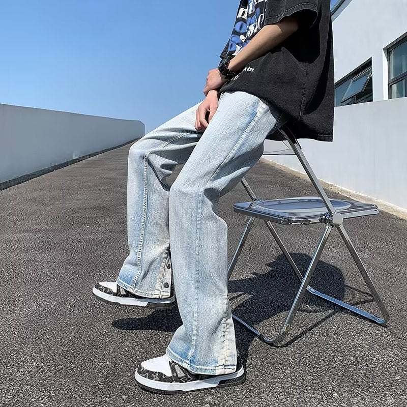 ♜ 𝔽𝕦𝕤𝕚𝕠𝕟 𝔽𝕠𝕔𝕦𝕤 𖥟 𝖏𝖊𝖆𝖓𝖘 ☞ 牛仔褲夏季新款潮流ins時尚簡約扭扣設計寬鬆直筒長褲 D-109