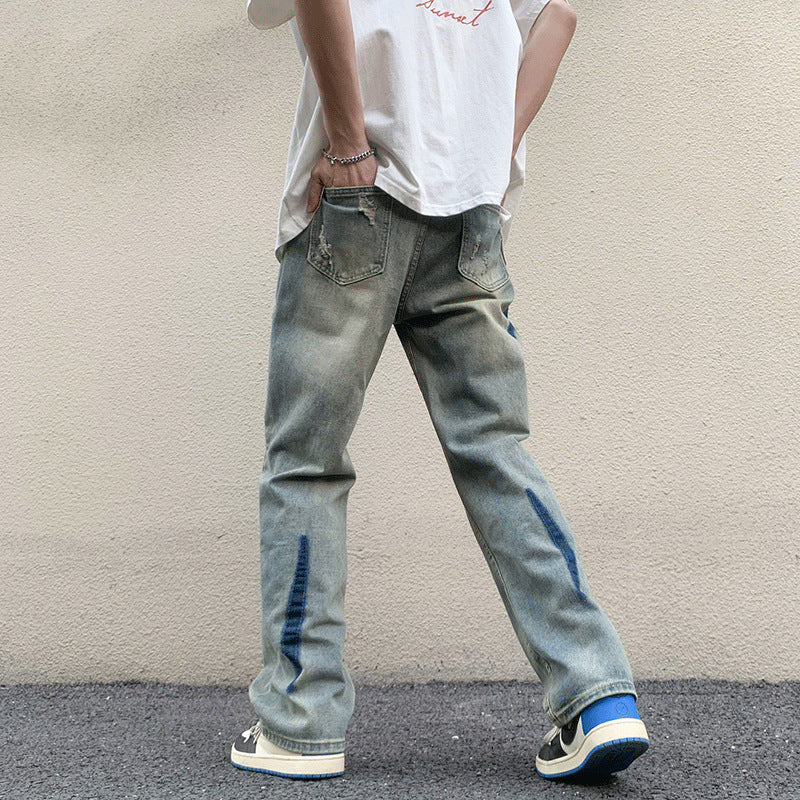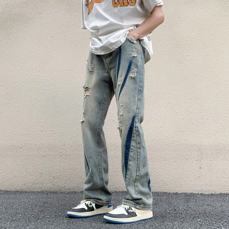 ♜ 𝔽𝕦𝕤𝕚𝕠𝕟 𝔽𝕠𝕔𝕦𝕤 𖥟 𝖏𝖊𝖆𝖓𝖘 ☞ 破洞扎染牛仔褲夏季新款ins潮流寬鬆直筒褲時尚氣質闊腿褲 D-106