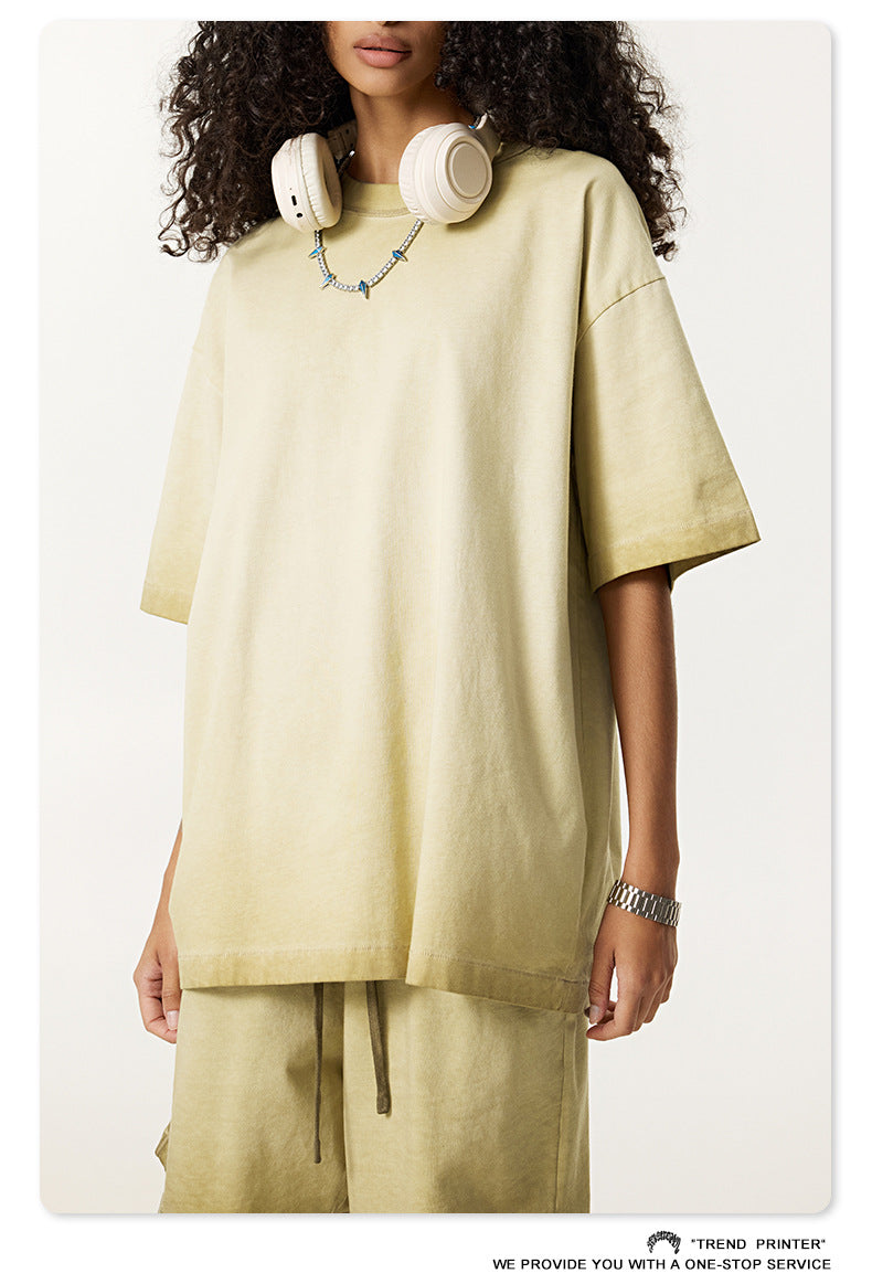 ▶𝔽𝕦𝕤𝕚𝕠𝕟 𝔽𝕠𝕔𝕦𝕤 ⌘𝓦𝓪𝓼𝓱𝓮𝓭 𝔀𝓲𝓷𝓭 ◀ 2025夏季歐美高街oversize寬鬆大碼半袖T恤雙紗平纹圓領短袖 TZ-02