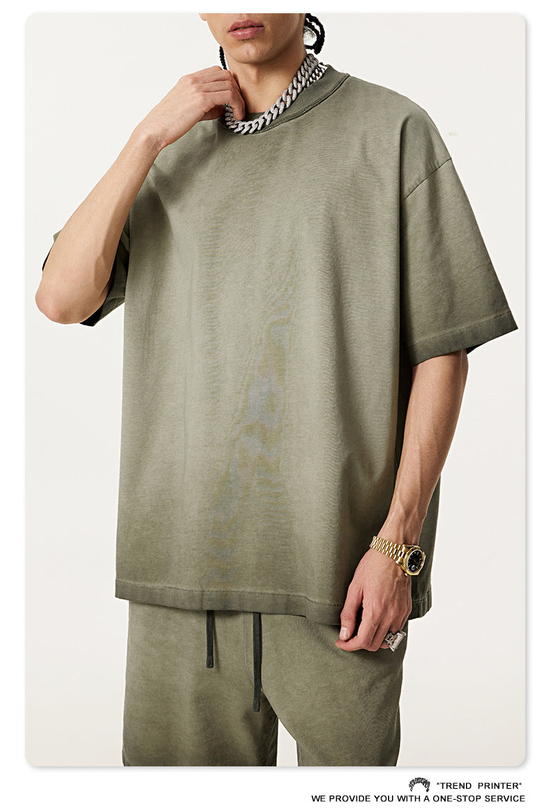 ▶𝔽𝕦𝕤𝕚𝕠𝕟 𝔽𝕠𝕔𝕦𝕤 ⌘𝓦𝓪𝓼𝓱𝓮𝓭 𝔀𝓲𝓷𝓭 ◀ 2025夏季歐美高街oversize寬鬆大碼半袖T恤雙紗平纹圓領短袖 TZ-02