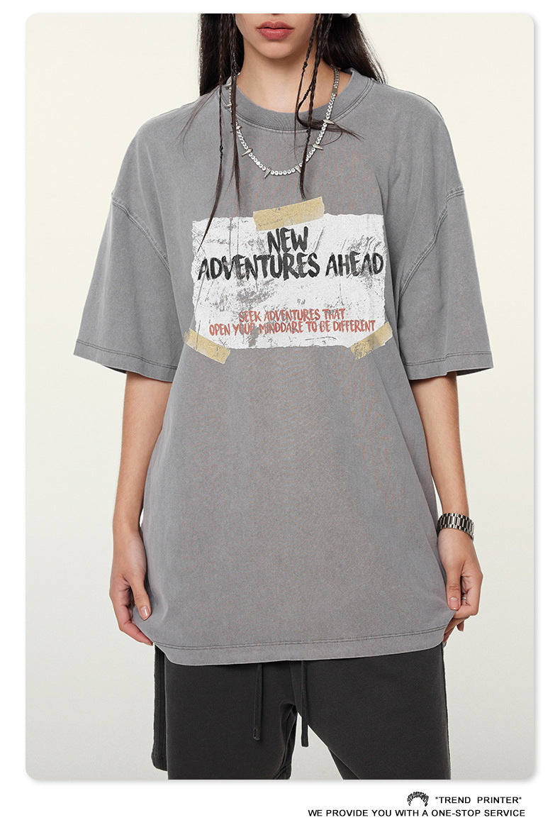 ▶𝔽𝕦𝕤𝕚𝕠𝕟 𝔽𝕠𝕔𝕦𝕤 ⌘𝓦𝓪𝓼𝓱𝓮𝓭 𝔀𝓲𝓷𝓭 ◀ 2025夏季美潮西海岸ins創意纸膠印花短袖潮牌oversize上衣 TZ-12