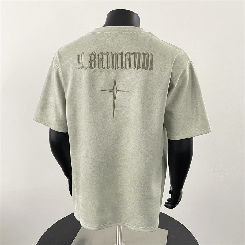 𝔽𝕦𝕤𝕚𝕠𝕟 𝔽𝕠𝕔𝕦𝕤 ✘ 2025新款美式復古刺绣t恤男款簡約高級感穿搭短袖正肩小領短袖 N505