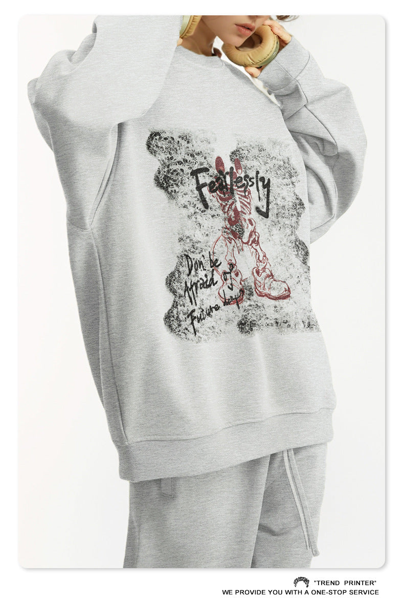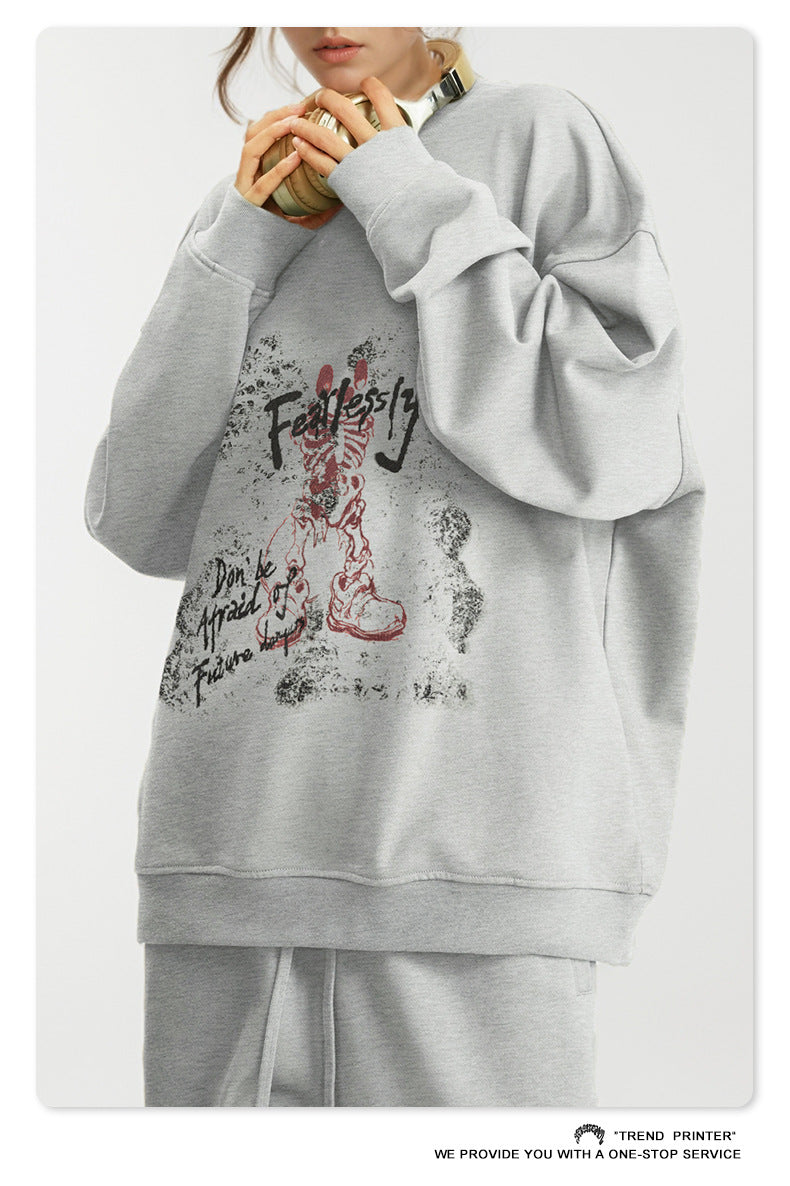 ♛𝔽𝕦𝕤𝕚𝕠𝕟 𝔽𝕠𝕔𝕦𝕤 ♛2025秋冬高磅水洗印花寬鬆落肩厚T 916